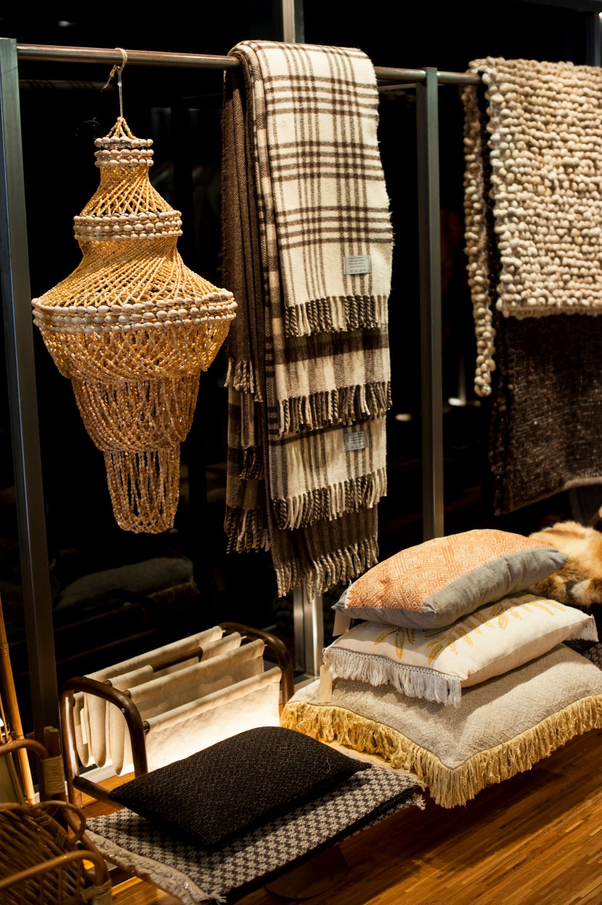 É uma loja moderna e vibrante, que pede tempo para apreciar os seus muitos pormenores e delicadezas, das caixinhas com madrepérola incorporada às figuras de animais em miniatura. Sem esquecer peças que, sendo utilitárias, dão um charme extra à casa. É o caso dos candeeiros de teto de outras épocas, ou dos tapetes e mantas de lã, com diferentes texturas, feitos, em Mirandela, por Fátima Gomes – a tecedeira encarrega-se de tudo até chegar ao produto final, incluindo a fiação.
