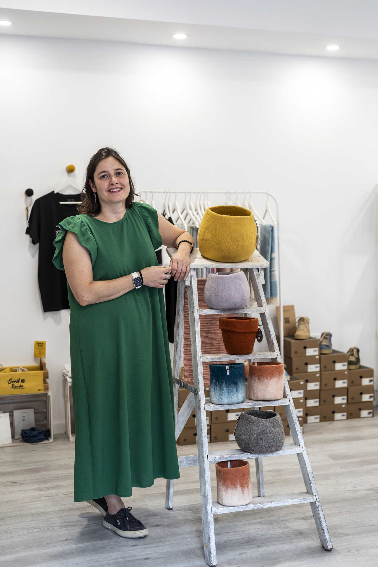 Certo é que não faltam opções para os mais diversos fins, desde mochilas feitas com plástico reciclado até garrafas reutilizáveis, cadernos, peças de cerâmica, cosméticos ou produtos de higiene feminina que servem de alternativa às habituais opções descartáveis. As prateleiras passaram a acomodar ainda detergentes a granel e produtos alimentares, como as farinhas da Moagem Carlos Valente, de Vale de Ílhavo. A loja disponibiliza também algumas peças de roupa e demais artigos em segunda mão, e continua a ter um ponto de bookcrossing (troca de livros).