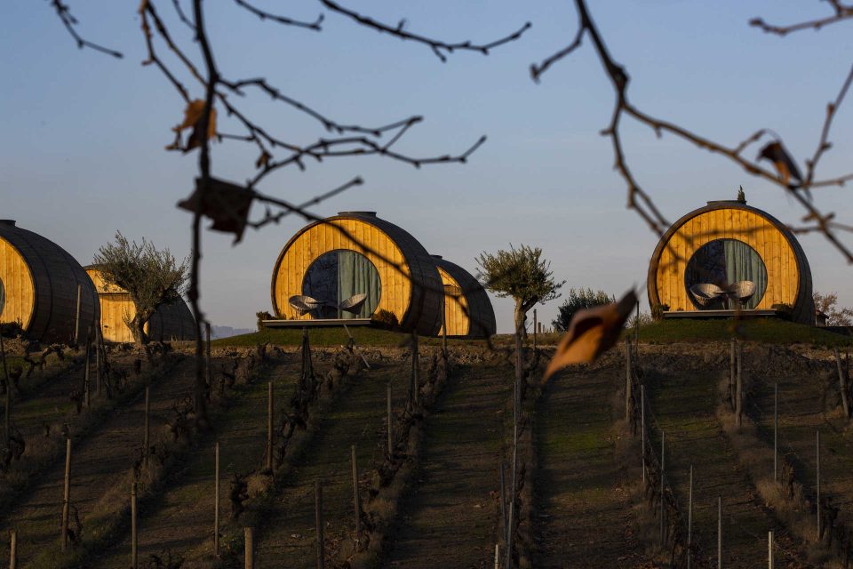 Foi em frente a várias parcelas das suas vinhas que a Quinta da Pacheca instalou 10 barricas gigantes - “wine barrels” - que são na verdade suites para se pernoitar a olhar as estrelas com todo o conforto.