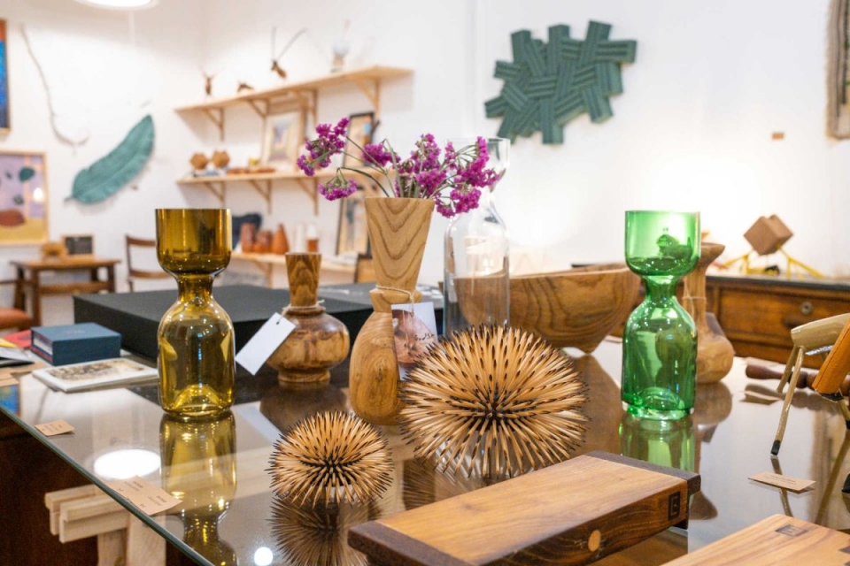 Peças em madeira, barro preto, gesso, vidro artesanal e tapetes alentejanos em tear são mais alguns dos produtos expostos. Aqui, como dizem os proprietários, “todas as coisas têm uma história por trás”. Era suposto abrir em março, mas a Cardo nasceu prematura, estando de portas abertas ao público desde dezembro de 2022. É fruto de um desejo de Marta Ribeiro e Hugo Andrade. “É uma área em que achamos que existia uma lacuna, não havia muita gente a dedicar-se a este conjunto de coisas. Queríamos divulgar artistas e técnicas”, diz Hugo.