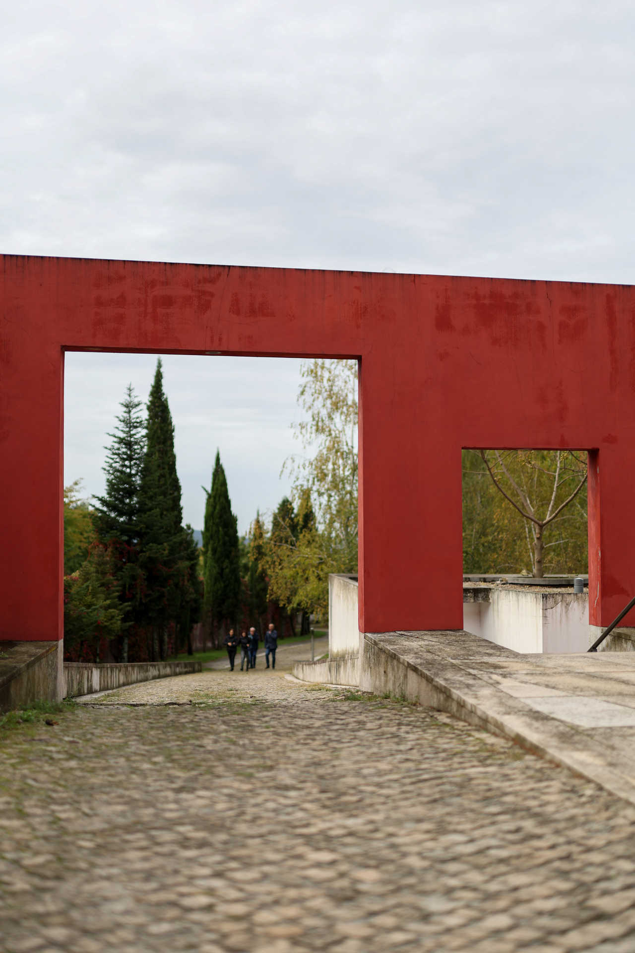 - Passando o átrio, pintado de vermelho escuro, chega-se a uma zona verde que é também um espaço cemiterial. (Fotografias de Paulo Jorge Magalhães/GI)