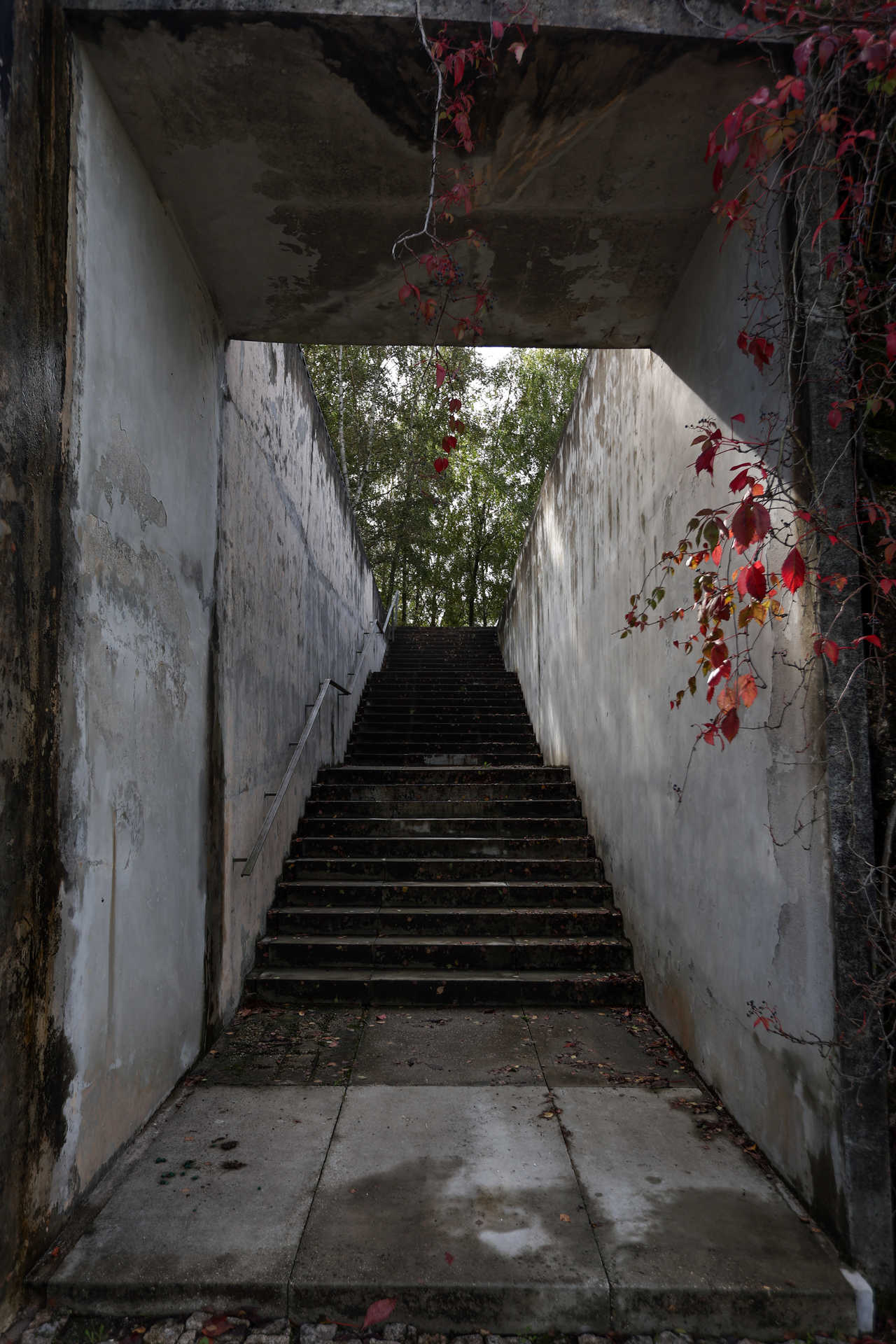 O cenário inclui borboletas, pássaros, árvores e trepadeiras que já acusam as cores outonais, mas não estamos propriamente num parque, antes no Cemitério Municipal de Monchique, em Guimarães. A ligação à natureza é uma das marcas deste equipamento nascido, em 2004, numa encosta do Monte da Penha, aproveitando a topografia. O desenho foi adaptado aos socalcos que existiam naquela antiga quinta, grandes pedras foram reutilizadas em muros, e a presença de nascentes fez da água elemento de destaque, ela que é símbolo de purificação. A arquitetura ficou a cargo de Maria Manuel Pinto de Oliveira e Pedro Mendo, a arquitetura paisagista ao cuidado de Daniel Monteiro. No ano seguinte, conquistou o 1.º Prémio Nacional de Arquitetura Paisagista, na categoria de Espaços Exteriores de Uso Público.