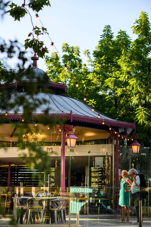 O elegante coreto que ocupa o centro do parque é morada, desde o início do ano, de um restaurante dedicado às carnes maturadas. Se o lugar, já idílico, é propício a uma visita, o que vai no prato inspira a prolongar o passeio. Costeletão de vaca, T-bone e tomahawk são alguns dos cortes que chegam à mesa, acompanhados por arroz caldoso, legumes ou puré de batata-doce. O interior foi decorado ao pormenor, com cadeiras de pele de Rebordosa e mesas de mármore vermelho de Estremoz. E no serviço de mesa têm lugar navalhas árabes, feitas artesanalmente, e pratos produzidos por um mestre oleiro do Alentejo. Ainda que as paredes envidraçadas deixem ver o parque e a cidade ao redor, estes dias de verão convidam a jantar na agradável esplanada, para aproveitar os ares temperados do final de tarde. «Este espaço pretende ajudar à preservação de um importante património mobiliário e imobiliário na cidade da Maia», lembra Pedro Maia, o proprietário, que já não estranho estas andanças – é dono de dois restaurantes em Vila do Conde: a Biferia e Uma casa de campo.