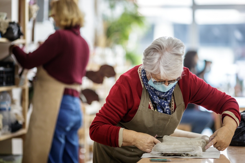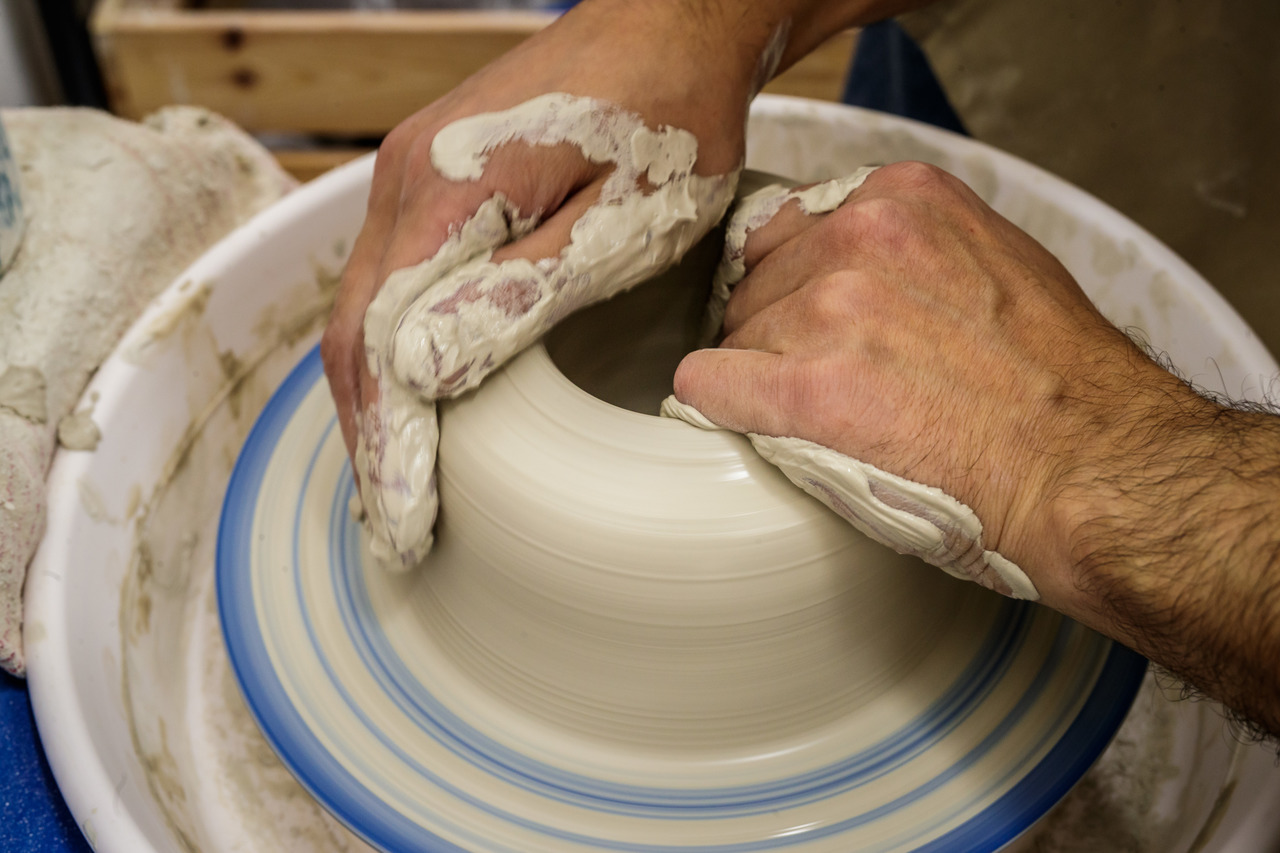 Na luminosa sala do estúdio, ao som de música clássica – curadoria de Nelson, que é músico profissional -, vê-se um punhado de caras semicobertas compenetradas no pedaço de barro que vai ganhando forma na bancada. “A melhor forma de aprender cerâmica é mesmo experienciá-la”, defende Nelson. “Mesmo quem nunca experimentou e que chega aqui a dizer que não sabe fazer nada, chega ao fim do workshop com uma peça acabada, feita de início ao fim”, garante Liliana.