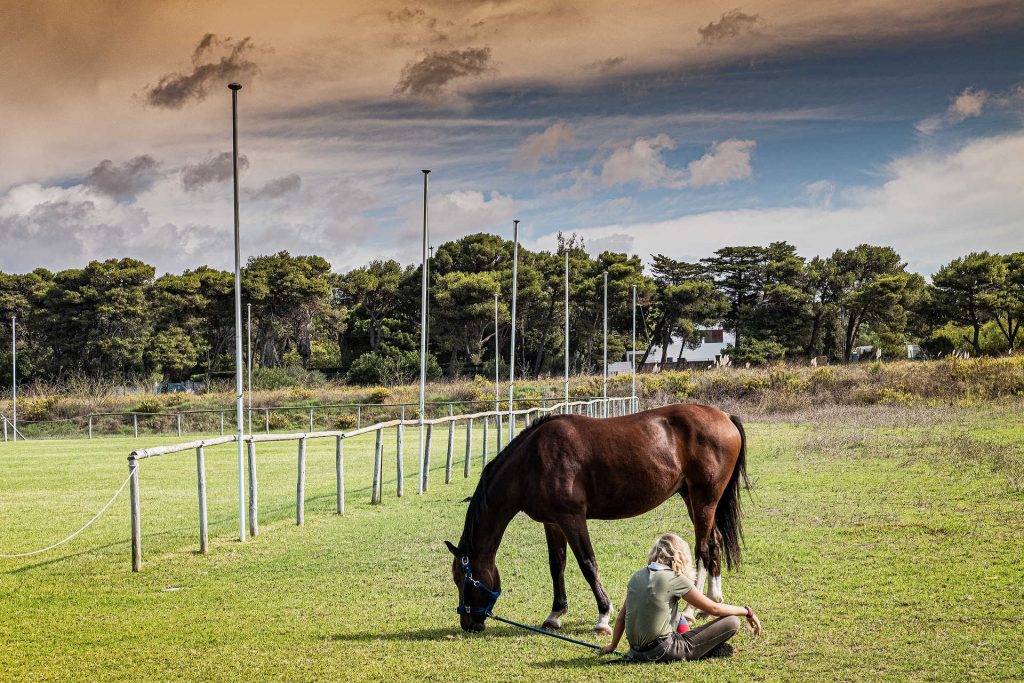 “Sempre tive o sonho de regressar ao campo”, conta a olhar para Vento, o seu cavalo branco “já reformado”. “O meu pai era agricultor numa quinta em Santarém e por isso sempre lidei com cavalos. Nasci praticamente em cima de um cavalo”, graceja. Atualmente já não monta com regularidade, mas seleciona os animais, treinando-os para que possam proporcionar uma experiência confortável e segura a qualquer pessoa – a maioria, quando ali chega, nunca teve qualquer contacto.