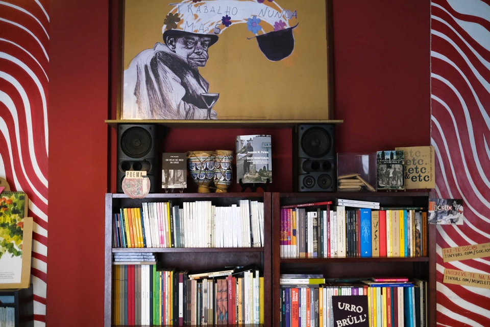 Paulo, investigador na área da literatura, produtor cultural e performer, e Ricardo, tradutor, encenador e professor de dramaturgia, pensaram em abrir um espaço cultural após o primeiro confinamento. “Não pensámos necessariamente numa livraria, mas sim num espaço para a cidade onde pudéssemos desenvolver o nosso trabalho”, conta Paulo. Mas logo perceberam que o espaço tinha de ser sustentável. “Podia vir para aqui fazer programação cultural mas como é que isso se pagava?”. Idealizaram, então, uma livraria, que inauguraram em junho e, agora que foram levantadas as limitações devido à pandemia, querem ter lá exposições, conversas, lançamentos de livros, entre outros eventos.