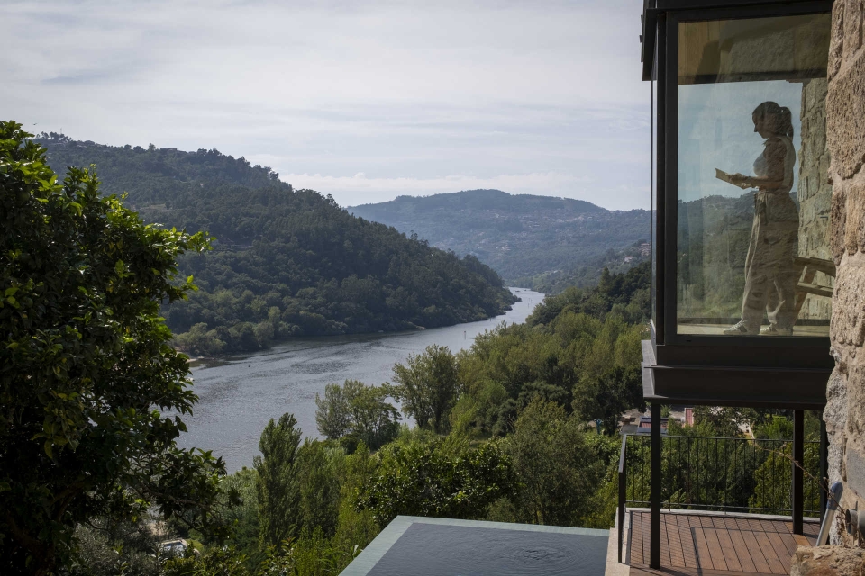 Somos recebidos com oferta de café, figos pingo de mel e um sorriso, ainda antes de olharmos bem em redor, para admirar a paisagem, a arquitetura das casas e o painel do artista Júlio Pomar, à vista de quem passa. O Dajas Douro Valley, no concelho de Marco de Canaveses, tem muitas camadas, que vão sendo desvendadas por Alexandra Martins. Eis o rosto deste projeto nascido de forma natural, em jeito de homenagem ao pai, que costumava acompanhar nos seus passeios de barco pelo rio, à pesca.
