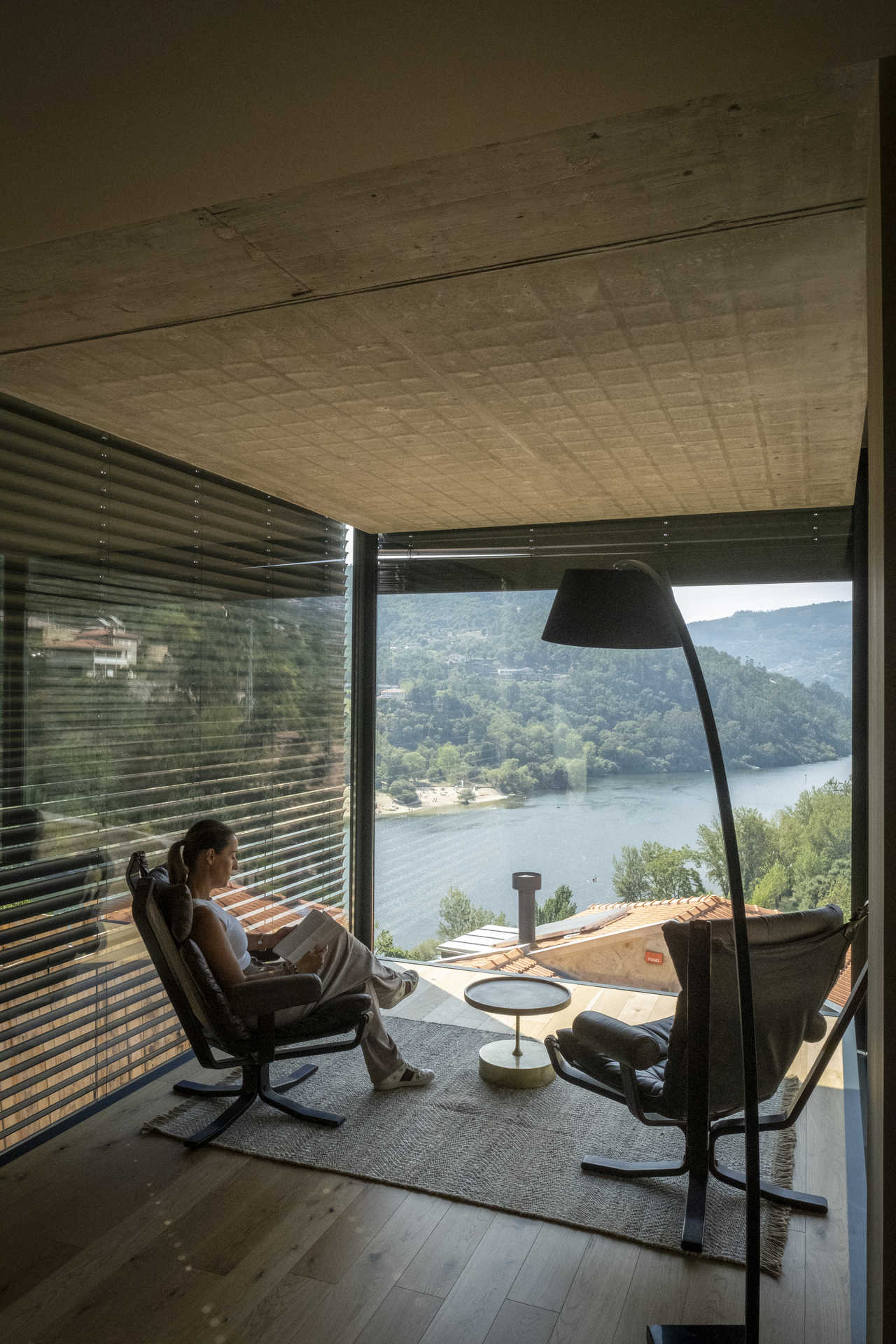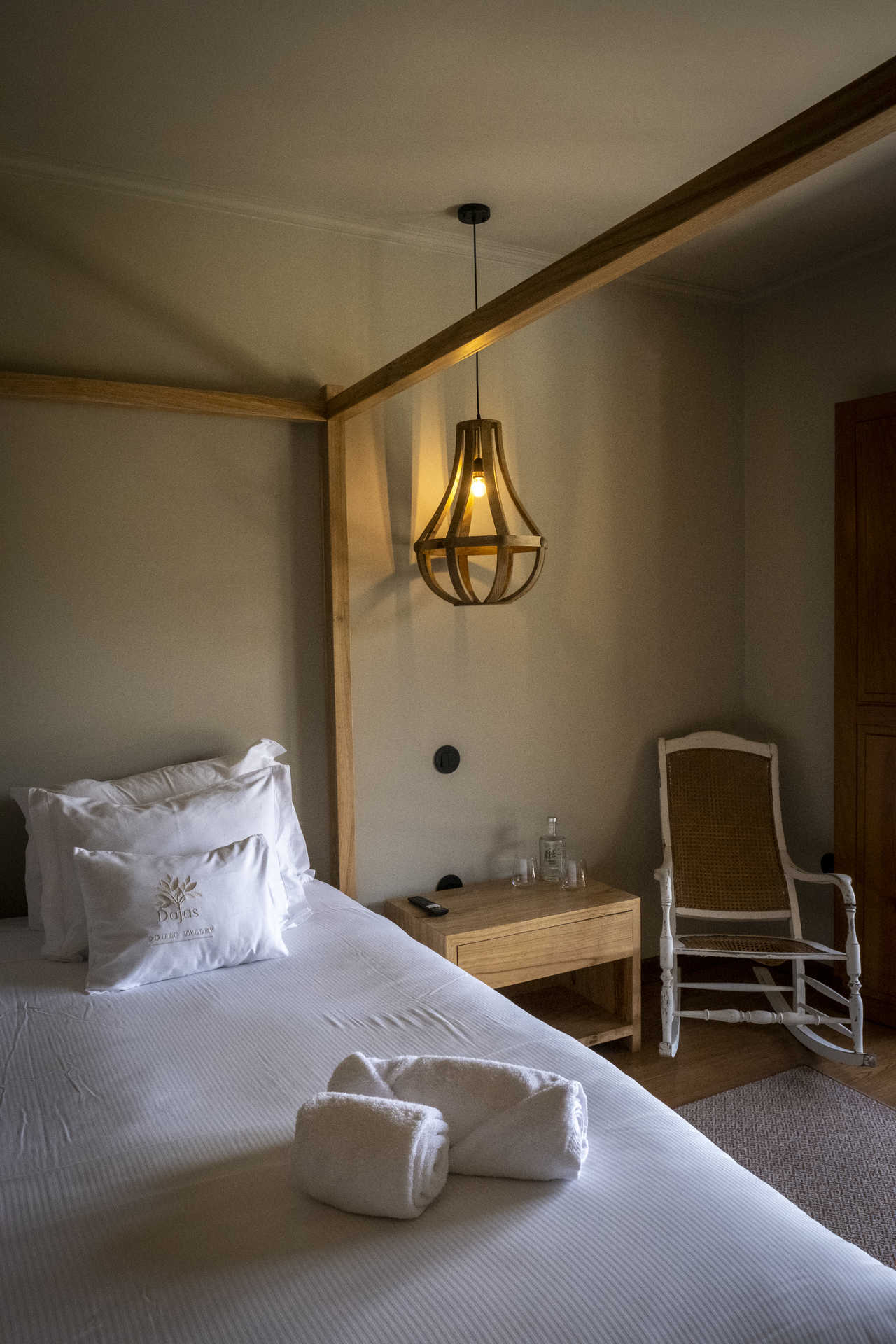 Por agora, especialmente requisitada tem sido a Casa da Professora, com jardim privado, lareira suspensa e banheira de hidromassagem. Ali viveu, em tempos, a professora da escola primária da localidade de Dajas – edifício contíguo, adquirido, em leilão, para dar lugar à Casa Escola. Ambas estavam em ruínas, tal como a Casa do Penedo, com grandes pedras a nu, namoradeiras e pé direito alto. Já a Casa do Miradouro destaca-se pelo janelão virado para o rio. Cada unidade de alojamento é singular, contudo, existe uma linha condutora na decoração (limpa, leve, pontuada por mobiliário nórdico) e nos materiais eleitos (pedra, madeira, terracota, microcimento).