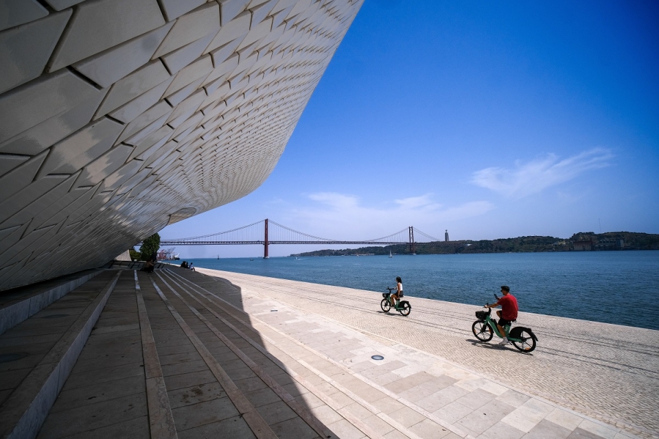 A Ponte 25 de Abril, o Cristo Rei e as encostas do território almadense sempre testemunhas fiéis do primeiro trilho ciclável que nasceu em frente ribeirinha na capital, há quase uma década e meia. Por estes dias longos e quentes, a diferença é que o percurso entre o Cais do Sodré e a Torre de Belém, somando sete quilómetros, faz-se na companhia das várias embarcações que trazem vida e ritmo ao Tejo.