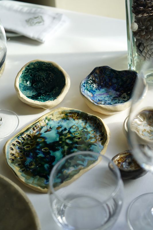 Lisas ou rugosas, a lembrar um coral marinho, uma concha ou com escamas em folha de ouro, todas são vidradas a alta temperatura para poderem ser usadas em contexto de cozinha. O processo decorre n’ A Loja do Ceramista, em Oeiras, onde Suzana Barros de Brito se concentra todas as segundas-feiras ao lado de outros ceramistas – com quem organiza também exposições coletivas. “Os restaurantes são cada vez mais espaços de experiências e o detalhe da loiça conta para isso”.