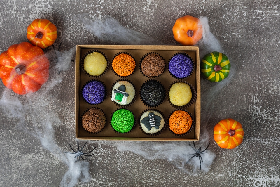 Para assinalar o Halloween, a marca de bolos e brigadeiros Brigadeiro Gourmet Lx preparou uma série de novas receitas inspiradas em bruxas, aranhas e morcegos. No cardápio já disponível para compra e encomenda online há, por exemplo, bolo de manteiga e brigadeiro “decorado com olhos de pasta de açúcar americana e brigadeiros no topo” (para seis a oito ou 10 a 12 pessoas); bolo red velvet recheado com brigadeiro à escolha e decorado com “teias e aranhas”; e o bolo vulcão. Quem quiser doses mais pequenas pode sempre optar por caixas de brigadeiros decorados com enfeites de açúcar. As encomendas podem ser feitas na loja online e, a partir do dia 20 de outubro, compradas diretamente no quiosque que a marca irá abrir no Oeiras Parque. AR