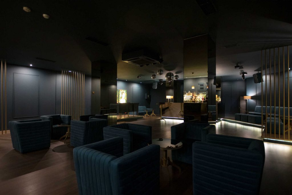 Passando a porta, discreta, que lhe dá acesso, há que descer as escadas até à cave, para encontrar um espaço sofisticado, de cores e decoração sóbria, mas que não dispensa alguns toques de nobreza, à base de veludos escuros, madeiras, espelhos e apontamentos dourados. E, claro, bolas de espelhos.