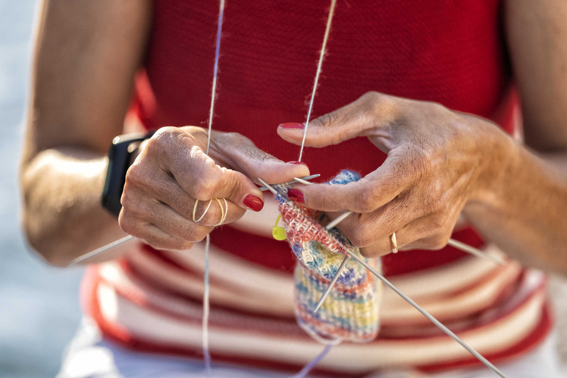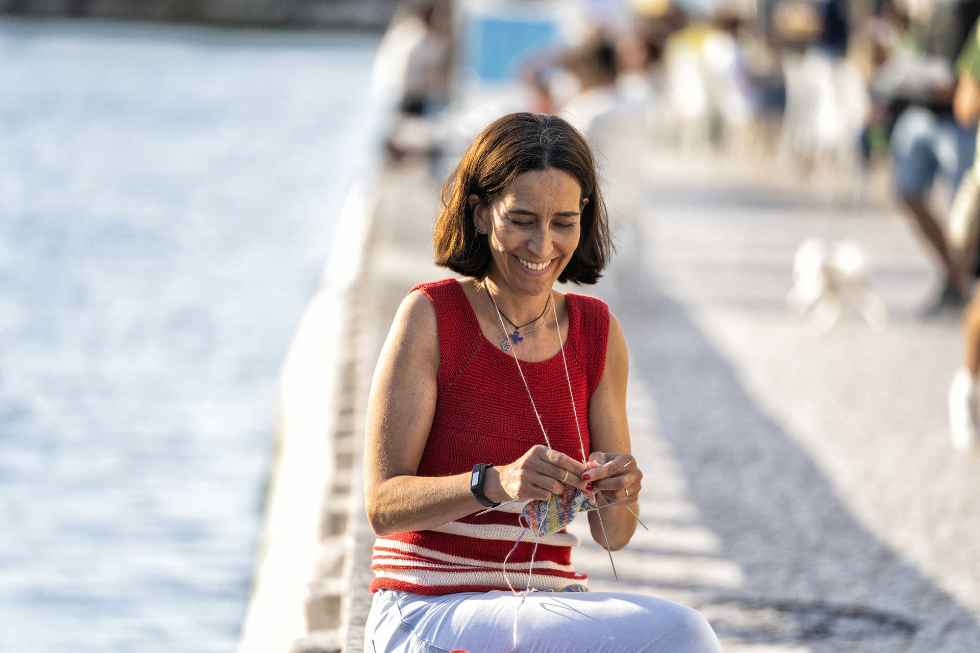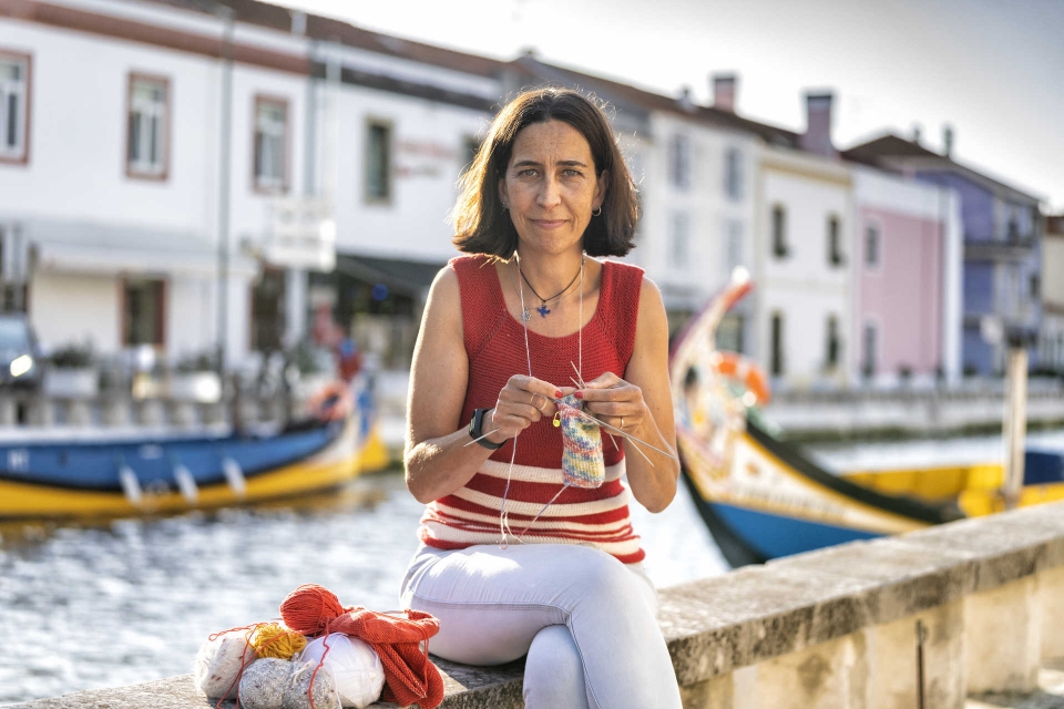 - Rita Quintela a tricotar junto a um canal da ria. (Fotografias: Maria João Gala/Global Imagens)