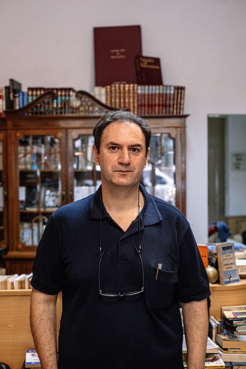 Livros novos e velhos, raros e curiosos partilham este espaço – com cerca de um ano de portas abertas – com as máquinas de prelo, tipos e as capas em pele com que Rui Azevedo Ribeiro restaura obras antigas e produz as suas edições. É um homem de muitos ofícios ligados aos livros, todos exercidos com paixão: poeta e editor, alfarrabista, encadernador e dourador. Aprendeu estas antigas e demoradas artes da perfeição com mestres e montou a sua oficina nas traseiras da livraria, onde as peças, que seriam de museu, estão ao serviço da segunda vida dos livros. DM