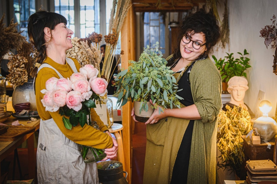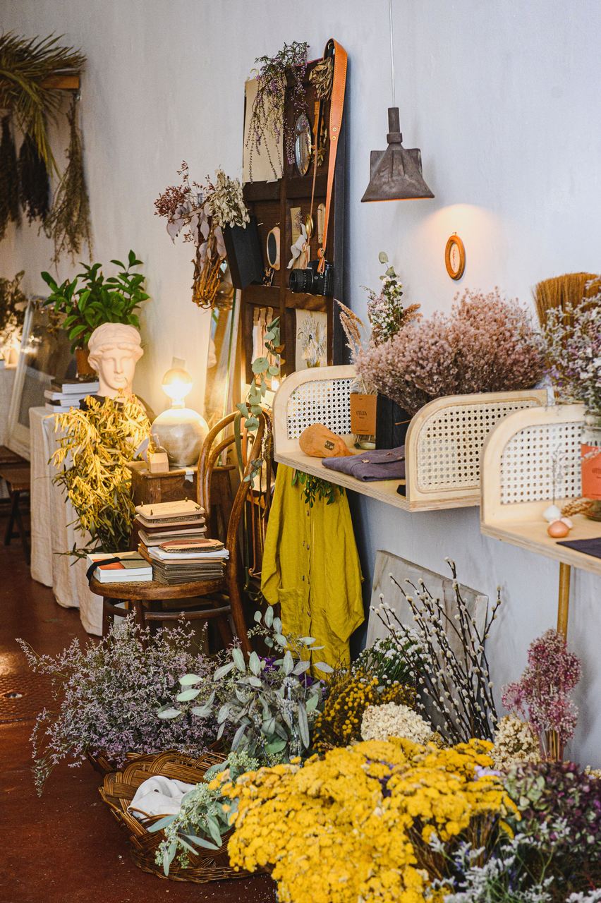 Esta loja de flores é uma espécie de refúgio no centro da cidade, de ambiente rústico e romântico, que convida a desacelerar. Inês Magalhães e Ana Falé trabalham flores nacionais e de época, frescas e desidratadas, mas são estas últimas que tomam conta do espaço, em arranjos de várias cores e tamanhos. A complementar, jarras, batentes e prensadores de flores em madeiras, peças em cerâmica, acessórios em linho destinados à jardinagem e ilustrações de temáticas relacionadas com o mundo natural. ALS