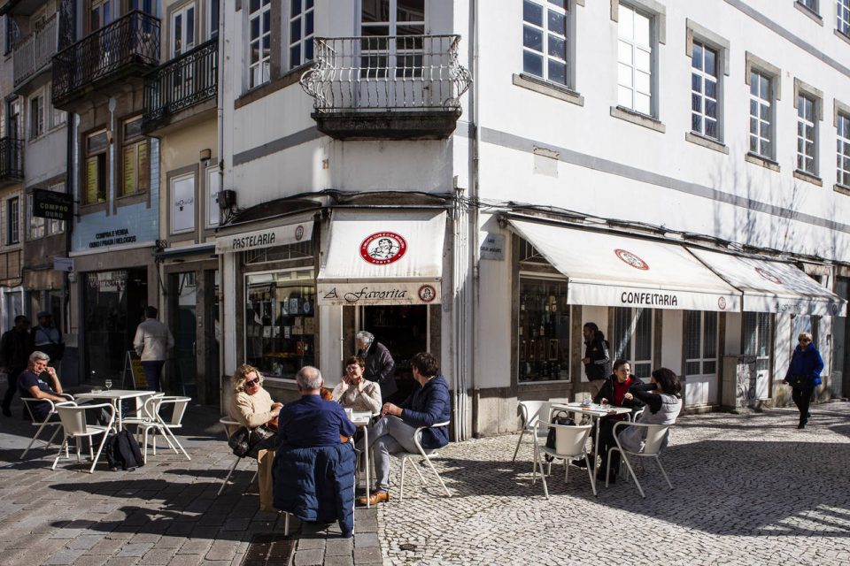 Os salgadinhos caseiros, como os bolinhos de bacalhau, as frigideiras e as empadinhas de carne, são a especialidade desta casa na esquina da Rua de São Marcos com o Largo Carlos Amarante. Mas n’A Favorita também brilham os doces que recheiam a montra numa seleção variada: casadinhos, húngaros, tíbias. Nas vitrinas e prateleiras, descansam ainda garrafas de vinho do Porto, embalagens de biscoitos Paupério, amêndoas e chocolates. Esta pastelaria emblemática, bem no coração da cidade, é uma das mais antigas de Braga – os primeiros registos datam de 1935 – e tem vindo a passar de geração em geração, conservando o espaço e o serviço de sempre. Em dias soalheiros, a esplanada é uma das mais concorridas da zona, por ser banhada pelo sol até ao final da tarde.