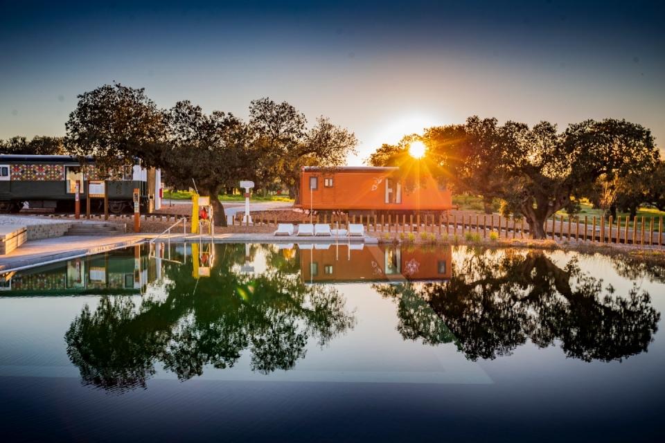 Nem tudo o que é novo é bom. Esta quinta de turismo rural, a Herdade dos Adaens, é nova e de qualidade superior. Um alojamento pertença da família Nabeiro que é, na verdade, mais do que um simples alojamento. Uma espécie de postal perfeito, de 400 hectares, com restaurante próprio (a cargo de Ilda Vinagre), pomar, horta biológica e ainda um Centro de Interpretação da Natureza, Mel e Biodiversidade onde se pode ficar a saber quase tudo sobre o mel ou raças de bovinos portuguesas. E de raças de burros, de cabras… Se bem que seja difícil fugir a esta imagem – a piscina com um bungalow ao fundo. É um quarto, naturalmente, uma das duas carruagens compradas à CP e que se transformaram de imediato em ex-líbris da casa.