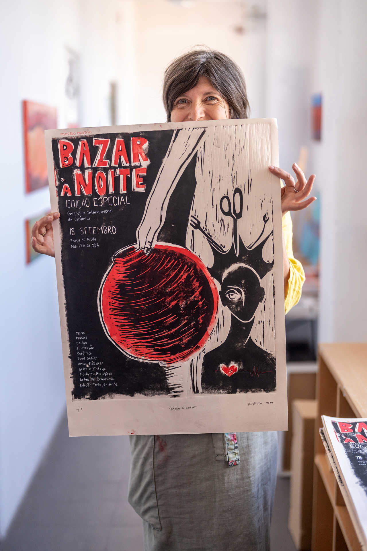 - Zélia Évora, autora do cartaz do Bazar à Noite – Edição Congresso (Fotografia de Maria João Gala)
