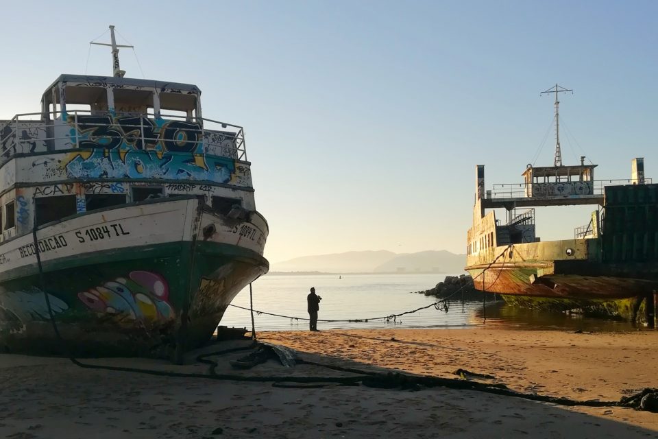 O ferryboat Expresso e o barco de passageiros Recordação jazem abandonados numa enseada na zona industrial de Setúbal há anos. E muitos têm sido os curiosos atraídos pelo cenário misterioso e grafitado que, com a luz certa, tem até a sua beleza. Durante um passeio no último fim de semana voltei para os admirar e imaginar as histórias que eu próprio e outros viveram a bordo deles. Doce recordação. ANDRÉ ROSA