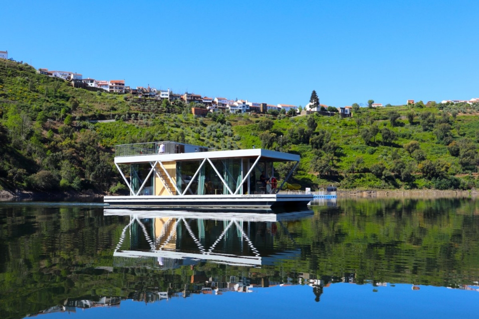 “Queria que este projeto fosse algo que respeitasse a paisagem natural da aldeia e que, em simultâneo, cuidasse do nosso planeta. O Floating Álvaro foi desenhado com materiais de baixo impacto ambiental, utiliza tecnologia que reduz a pegada ecológica, conta com uma estação de tratamento de águas residuais por lamas ativadas”, prossegue a mesma fonte. Acresce que a embarcação, munida de cozinha equipada, casa de banho e espaço exterior, é “alimentada por energias renováveis”.