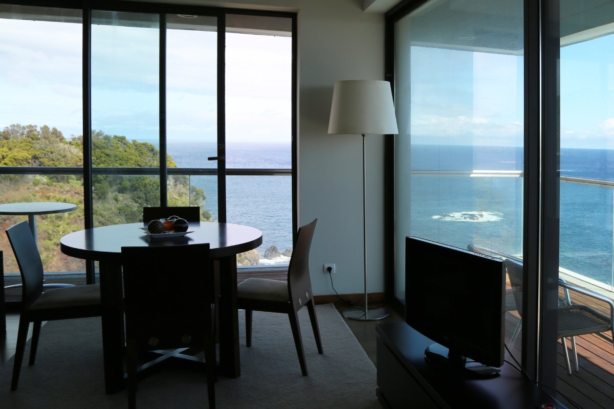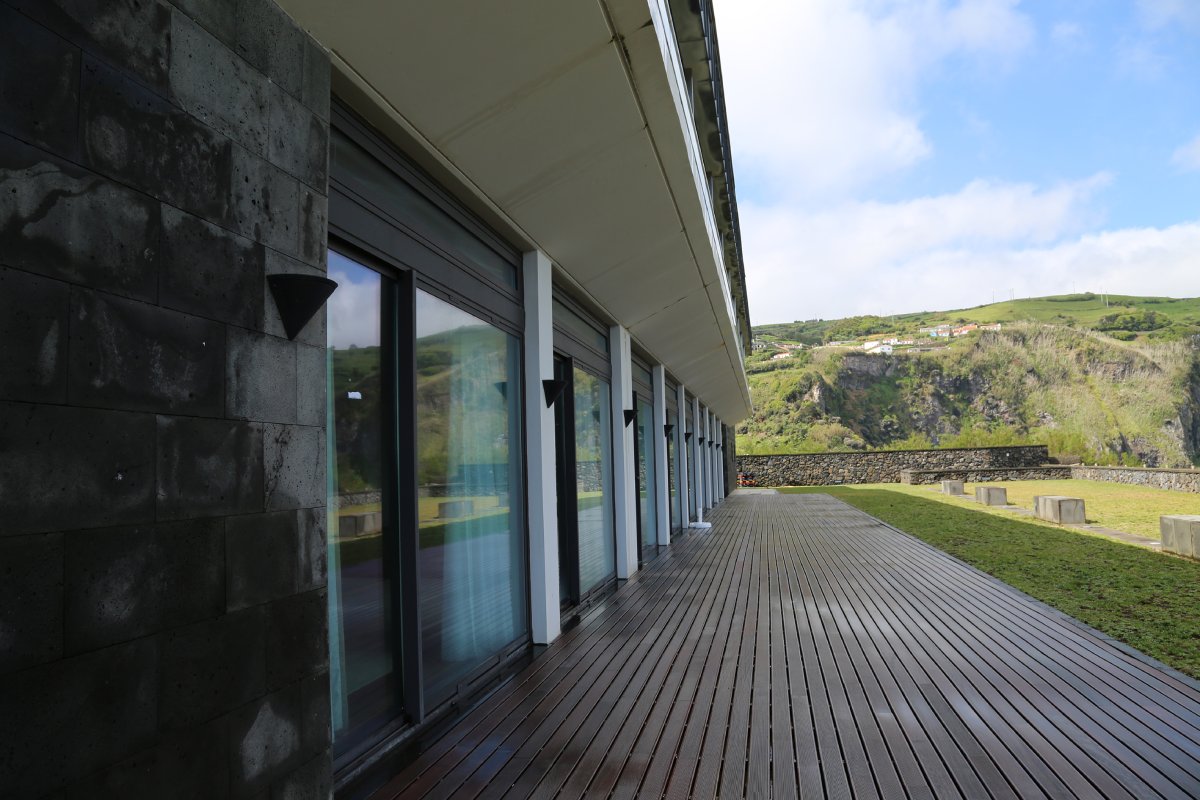 A poucos metros, ainda na Zona do Boqueirão, o INATEL FLORES HOTEL oferece quartos com vistas desafogadas para o oceano. Nos dias em que o céu permite, vê-se a ilha do Corvo, que dista 13 milhas náuticas de Santa Cruz das Flores. Não se vislumbra somente o contorno da mais pequena ilha dos Açores. As casas da vila do Corvo são percetíveis e queremos acreditar que, nos dias de Sol, até os carros se veem a passar. Naquele alojamento, estamos mesmo na ponta das Flores. Estamos a metros das ondas do Atlântico e temos vislumbre do que é estar em casa como um florentino, num dia de outono ou de inverno. A unidade oferece 26 quartos: 19 com vista mar (um deles é uma suíte) e sete com vista terra.