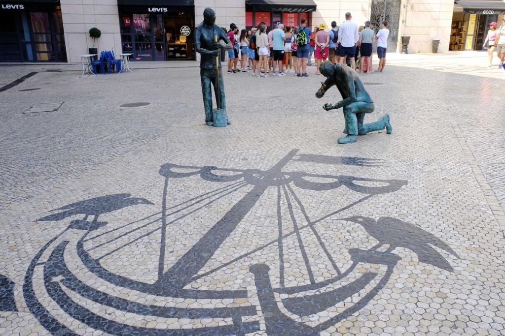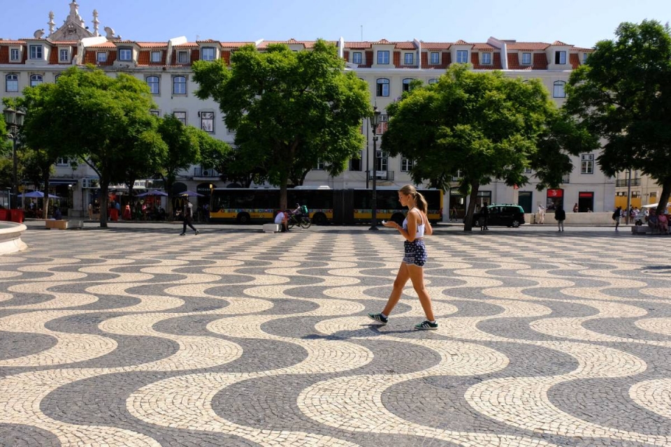 O percurso A, cosido por 16 pontos interessantes para observação, percorre o Parque Eduardo VII até à Praça do Município e atinge o ponto alto na Praça D. Pedro IV, vulgarmente conhecida por Rossio. É aí que está o Mar Largo, com um padrão ziguezagueante com planos côncavos e convexos, terminado originalmente em 1849 e replicado por calceteiros lisboetas na avenida de Copacabana. A ilusão de ótica era de tal forma intensa, que “as senhoras, pouco habituadas a sair de casa e vestidas com espartilhos, queixavam-se que o chão provocava náuseas”, revela.
