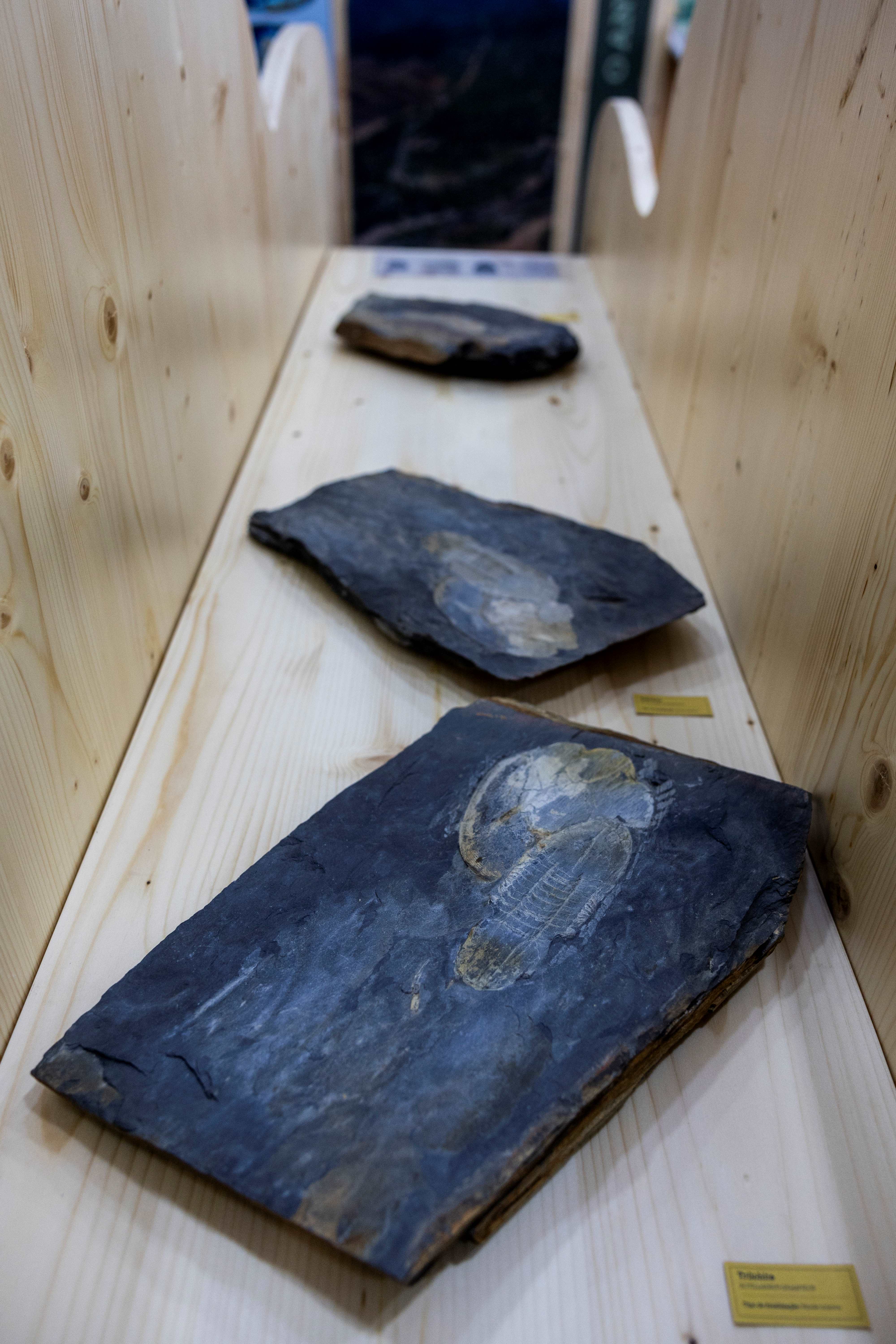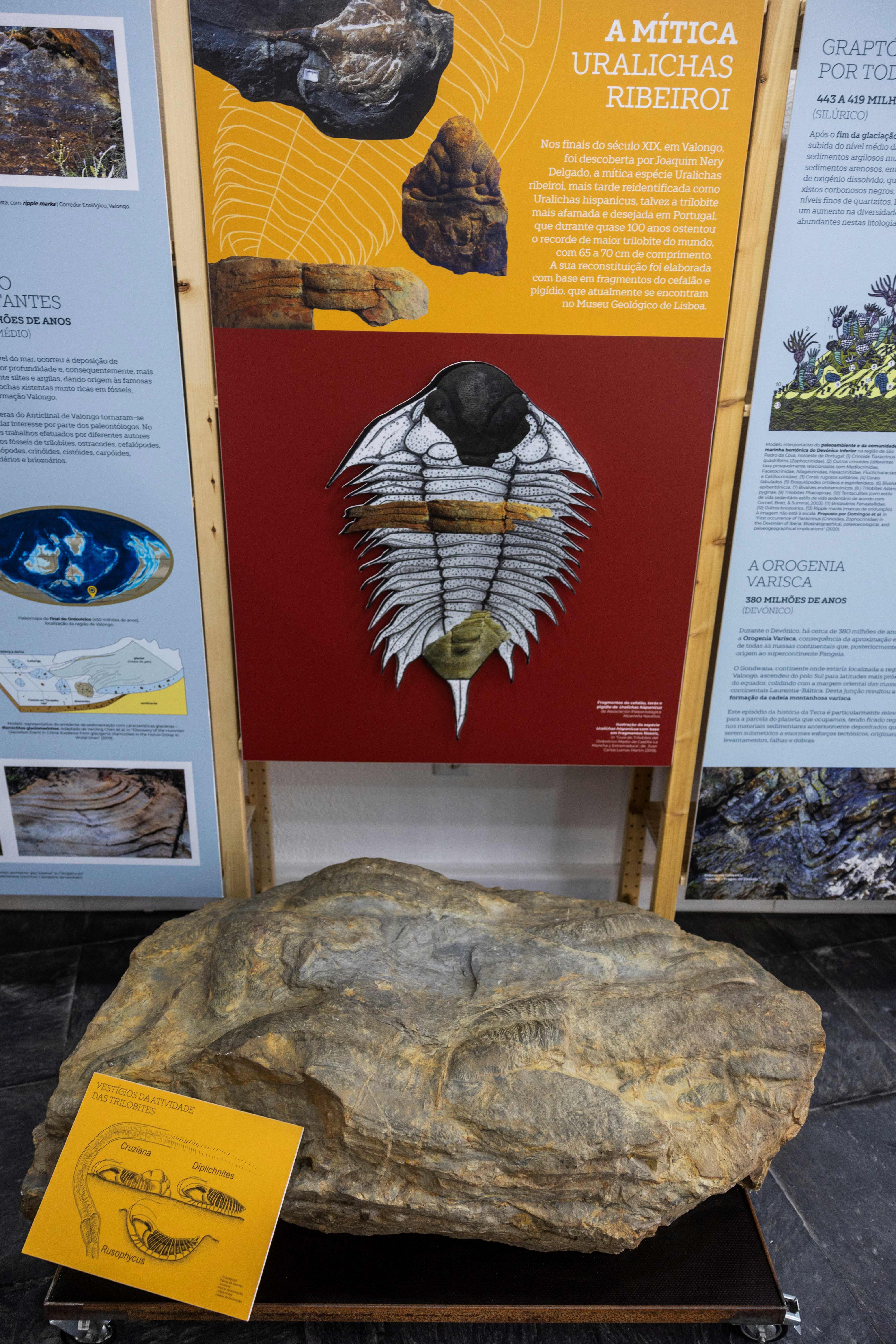 Na sala da exposição permanente, salta desde logo à vista um grande expositor em forma de trilobite, feito em peças de madeira, onde estão dispostos diversos fósseis, juntamente com informações sobre a sua anatomia, crescimento e transformações, e algumas curiosidades. A visita pode ser feita de forma autónoma, mas recomenda-se a marcação de uma visita guiada, para conhecer mais a fundo estes animais, que habitaram a Terra muito antes dos dinossauros. “Algumas trilobites eram cegas e outras tinham vários olhos”, informa Mariana. E podiam ter milímetros ou até várias dezenas de centímetros. “A maior trilobite até agora descrita está em Arouca, com quase 80 centímetros de comprimento. Mas curiosamente, durante centenas de anos, a maior trilobite do mundo era aqui de Valongo, era uma trilobite chamada Uralichas Ribeiroi, e tinha entre 65 e 70 centímetros”.