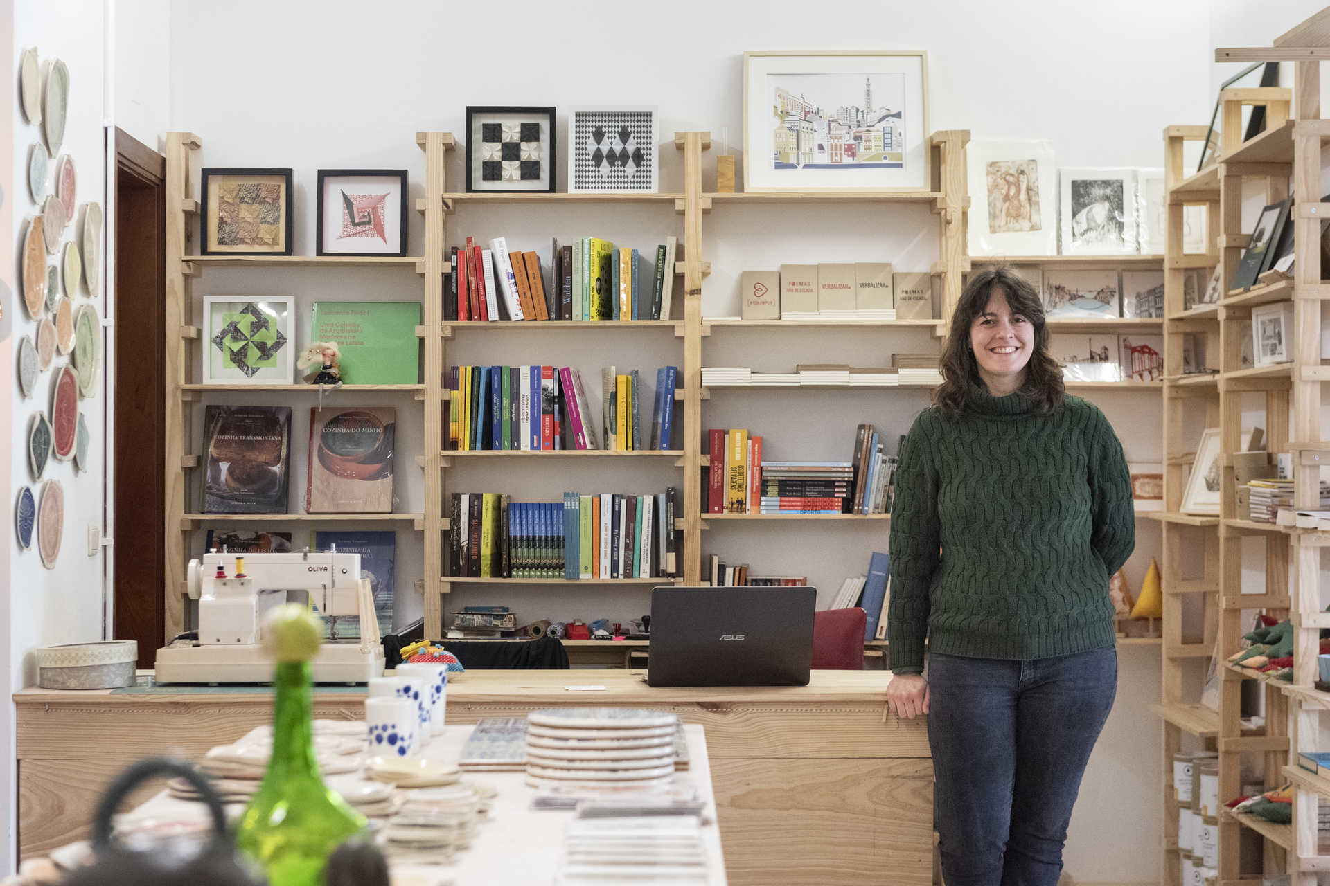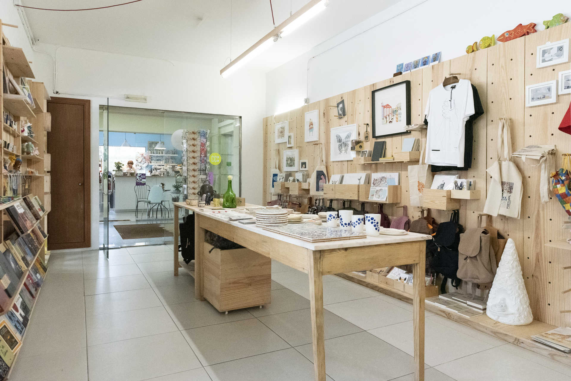 A eles juntam-se as ilustrações, algumas originais, de Mirjam Siim, Patrícia Pedro Afonso, Surya (Ana Sousa) e Legumi (Miguel Coelho), porta-moedas criados a partir de cassetes áudio antigas, da Gata Miura, e cadernos feitos à mão da Um Barra Um, A Vida em Play e Inusitado, que cabem perfeitamente nas mochilas Fátima Cunha. Pousadas na mesa que ocupa o centro da loja encontram-se peças em cerâmica, como pratos, canecas e taças da Nü Coworking Criativo, e de Joana Nogueira, a Maria João Sampaio, André Morais e Liliana Pereira, ceramista da Brâmica.