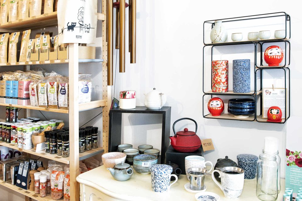 A área alimentar não é descurada. Das prateleiras espreitam chás biológicos, bolachas, chocolates vegan, especiarias ou flor de sal. Há filtros de carvão para a água, sacos reutilizáveis para combater o uso de plástico na hora de comprar vegetais e frutas, e ainda tábuas de madeira, talheres de bambu, taças de coco e, em jeito de complemento, peças de cerâmica com o selo Bordallo Pinheiro, que a seleção da loja abrange produtos portugueses.
