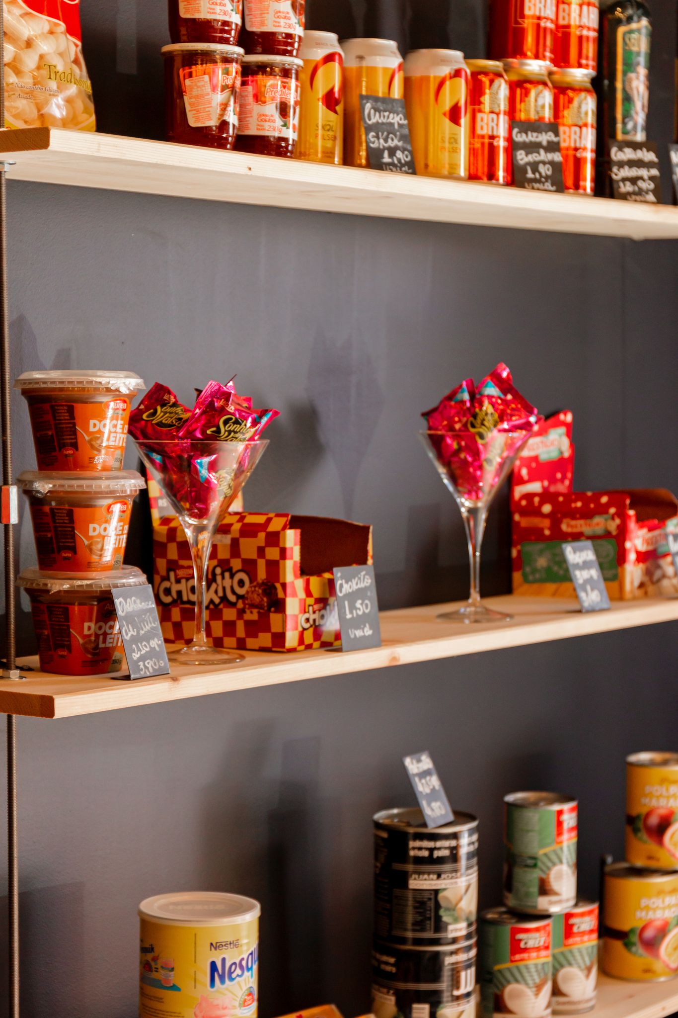 O catálogo abrange também produtos célebres, como os doces Prestígio, Chokito, chocolate Bis, doce de leite Aurea, biscoitos de polvilho, paçoca Moreninha do Rio ou os bombons Sonhos de Valsa. Sem esquecer os tradicionais marrom glacê, geleia de goiaba e goiabada da marca Predilecta. Para beber, há ainda a cerveja Skol, o café Pilão, água de coco, chá mate e todos os ingredientes para preparar um chimarrão, bebida do sul do Brasil que contém cuia e erva-mate.