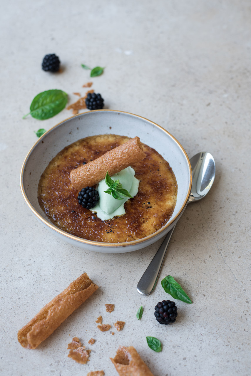 - O bacalhau com feijoada de “cabeça de coelho” e o leite-creme queimado com gelado de tomilho. (Fotografias: Inês Mendes/DR)
