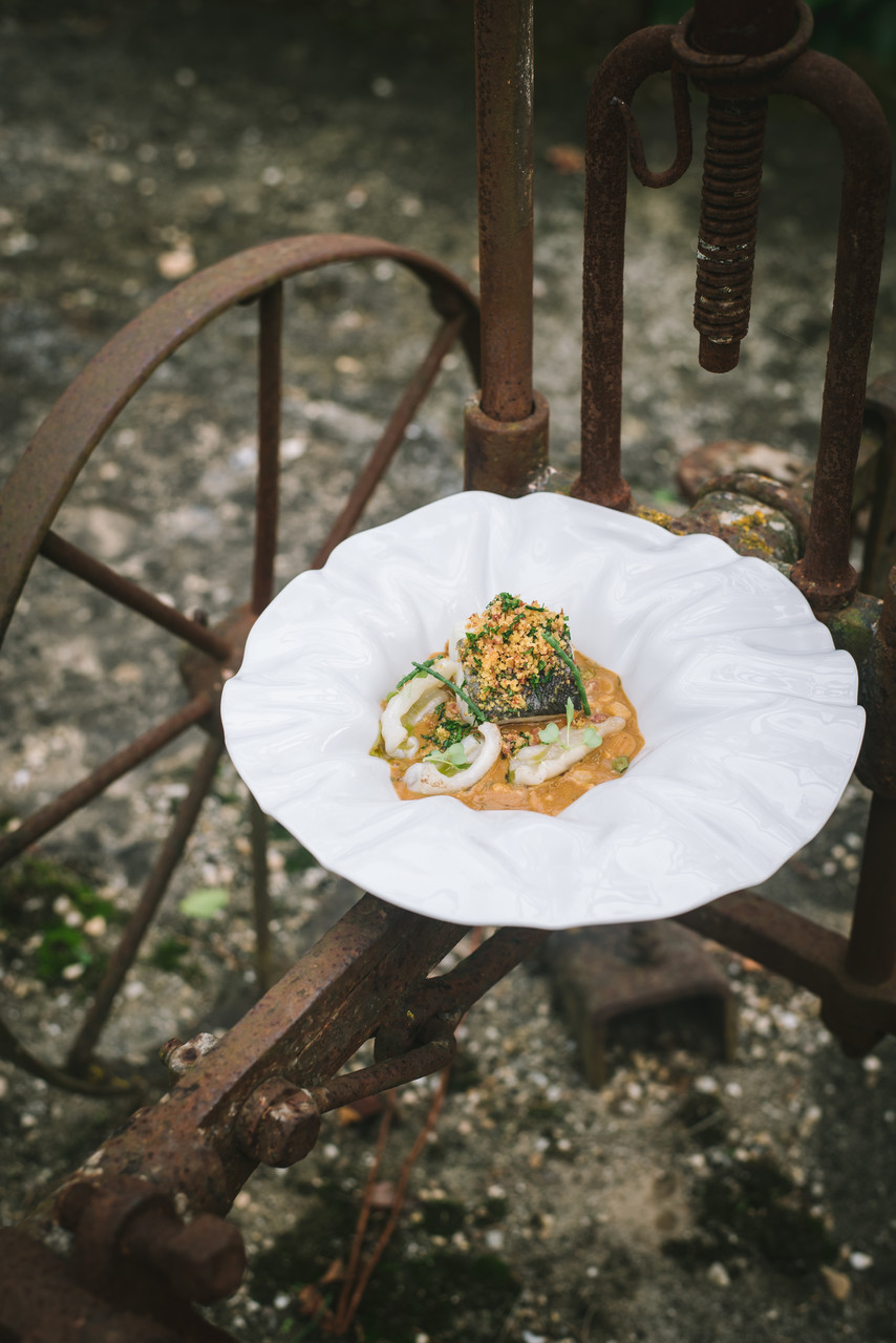 Algumas receitas já vêm de trás (é o caso do leite-creme queimado com gelado de tomilho), mas surgem atualizadas pela mão de Vítor Dias e enriquecidas com ingredientes da quinta, incluindo flores do jardim. Entre os pratos disponíveis, neste momento, no restaurante de fine dining Arcadas, estão o bacalhau com feijão “cabeça de coelho”, a barriga de leitão confitada e a sobremesa na capa: “O coração” de Inês de Castro. Tudo a harmonizar com vinhos da garrafeira, guardiã de mais de 300 referências, sobretudo do Dão e da Bairrada, e o contributo dos três escanções.