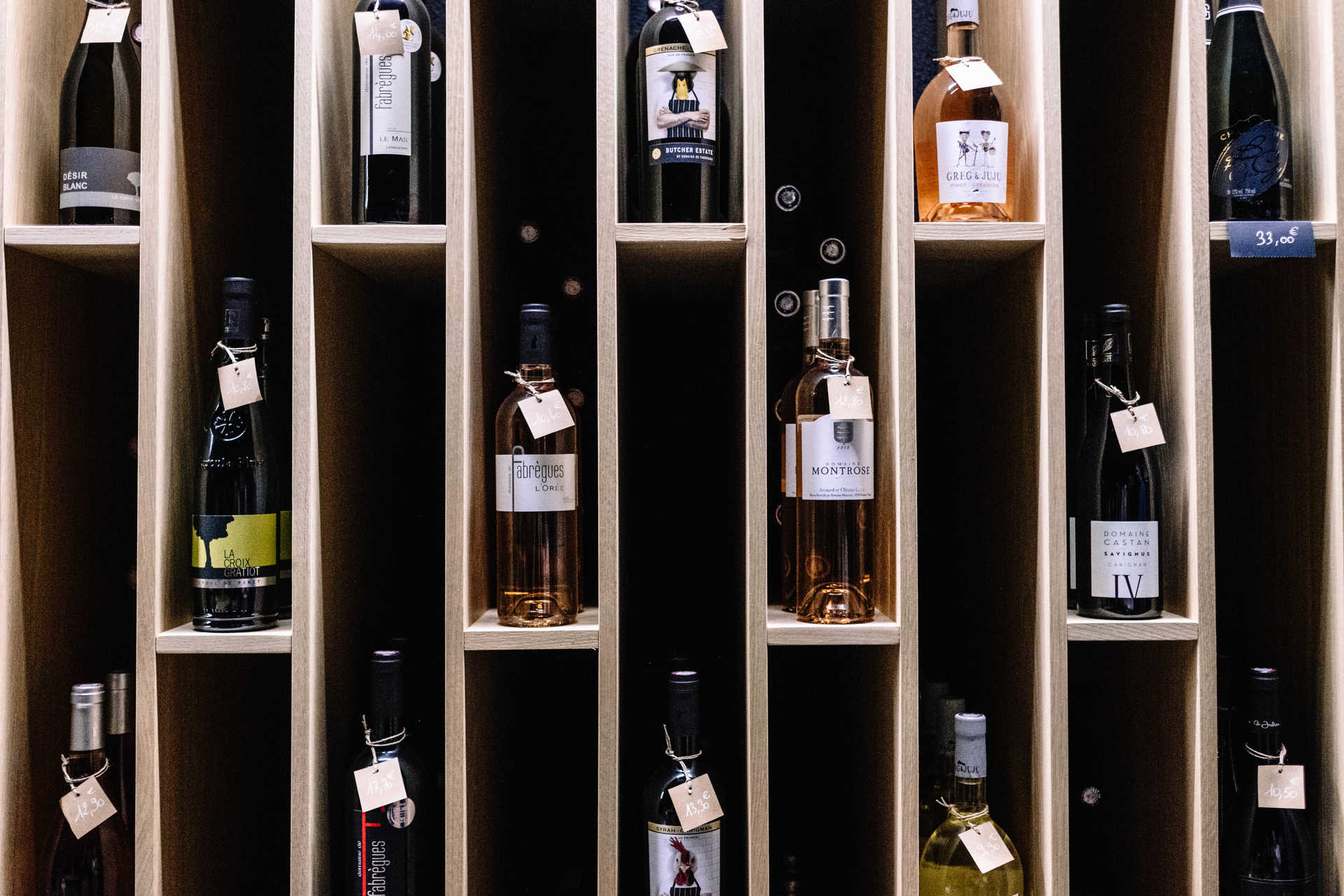 Na cave está ainda instalada a garrafeira, que guarda uma seleção de rótulos exclusivos da região de Languedoc-Roussillon, traçada entre a Provença e os Pirenéus, com mais de 70 referências, e um enfoque especial nos rosés. Há também cervejas artesanais, champanhe e espumante, e licores.
