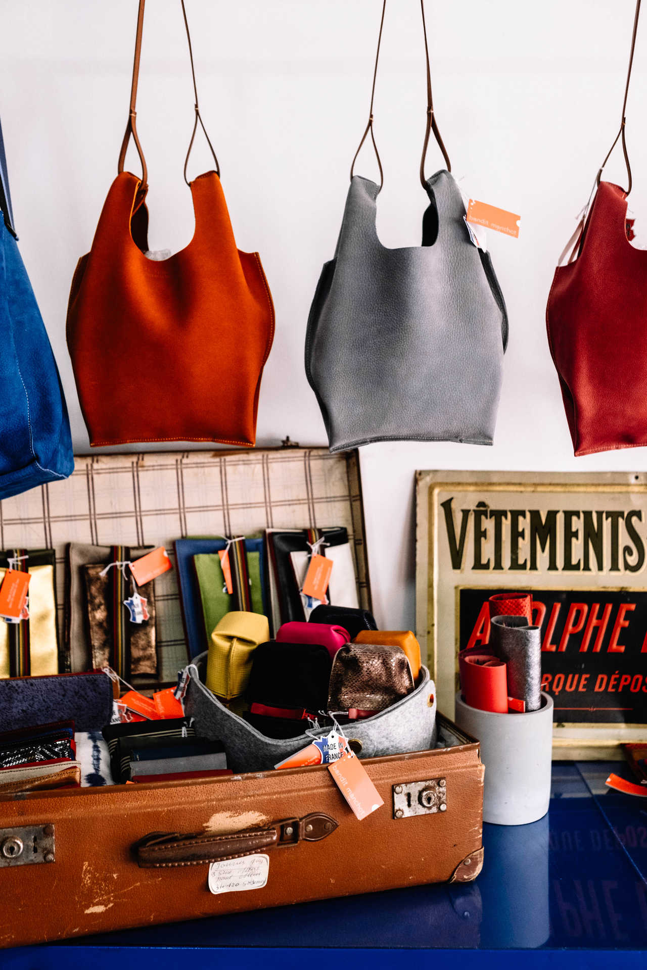 À entrada há ainda espaço para velas e perfumes para a casa feitos por um casal da Normandia e para as malas e carteiras da Bandit Manchot, uma marca de acessórios criada por três parisienses que utilizam sobras de couros para fazerem novas peças.