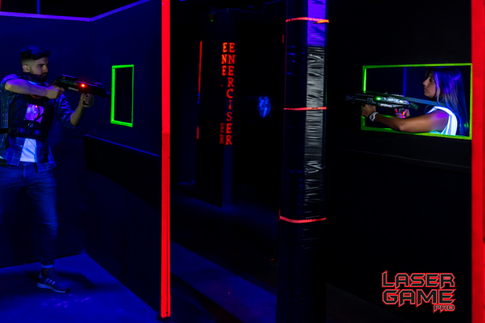 Quando se entra numa sala escura com fumo e música de suspense, já dá adrenalina”, conta Ricardo Silva, funcionário da Laser Game Pro, um espaço de diversão indoor, dentro da Bowling House de Vila Nova de Famalicão. A envolvente do labirinto, que se estende por dois pisos, está criada para proporcionar uma certa tensão nos jogadores que, de pistola em punho, batalham e tentam acertar com um fino feixe de luz – que “não faz mal aos olhos” -, nos membros da equipa adversária, enquanto percorrem o cenário futurista às escuras, onde apenas se vêem reflexos de luz negra. O “laser game” (ou “laser tag”) equipara-se ao paintball, no sentido em que também envolve um jogo de combate e estratégia, com pistolas, mas é livre de qualquer sujidade ou dor, dado que as bolas de tinta são substituídas por luz infravermelha.