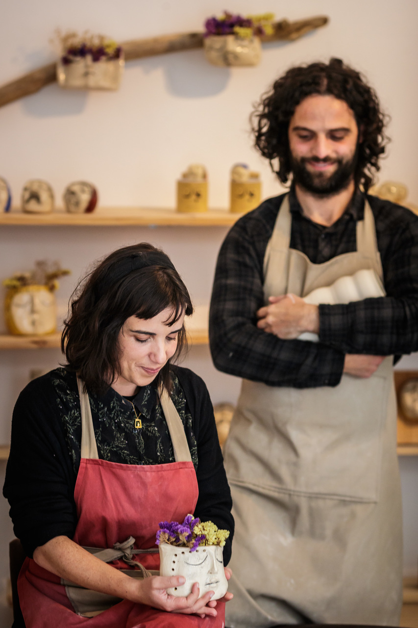 Os pequenos bustos moldados à mão por Liliana e inspirados nos trabalhadores do cultivo vinhateiro tomam o forma de rolhas, jarras, vasos, saleiros e pimenteiros, que se alinham nas prateleiras do Escape. As jarras, canecas e outros objetos de decoração criados por Nelson na roda de oleiro também têm lugar na montra. Mas, além de ser loja e estúdio dos dois ceramistas, é também um lugar onde qualquer um pode meter as mãos no barro. Há diversos workshops por marcação e vouchers para quem quiser oferecer a experiência neste Natal. AC