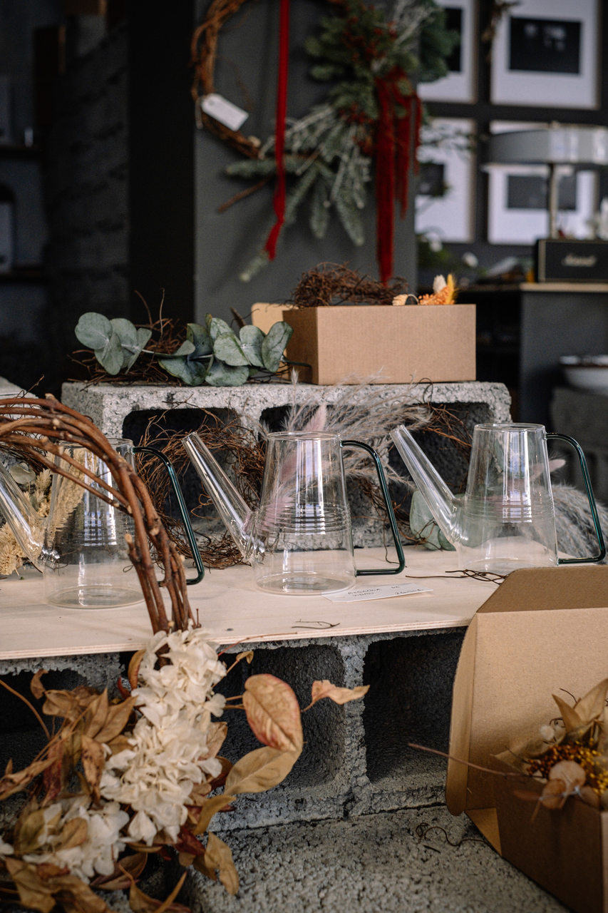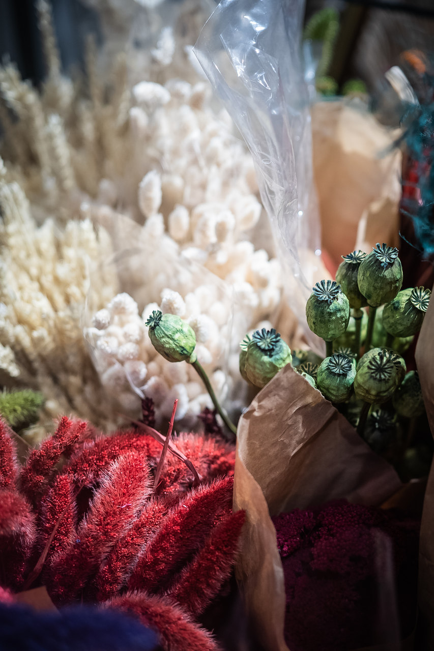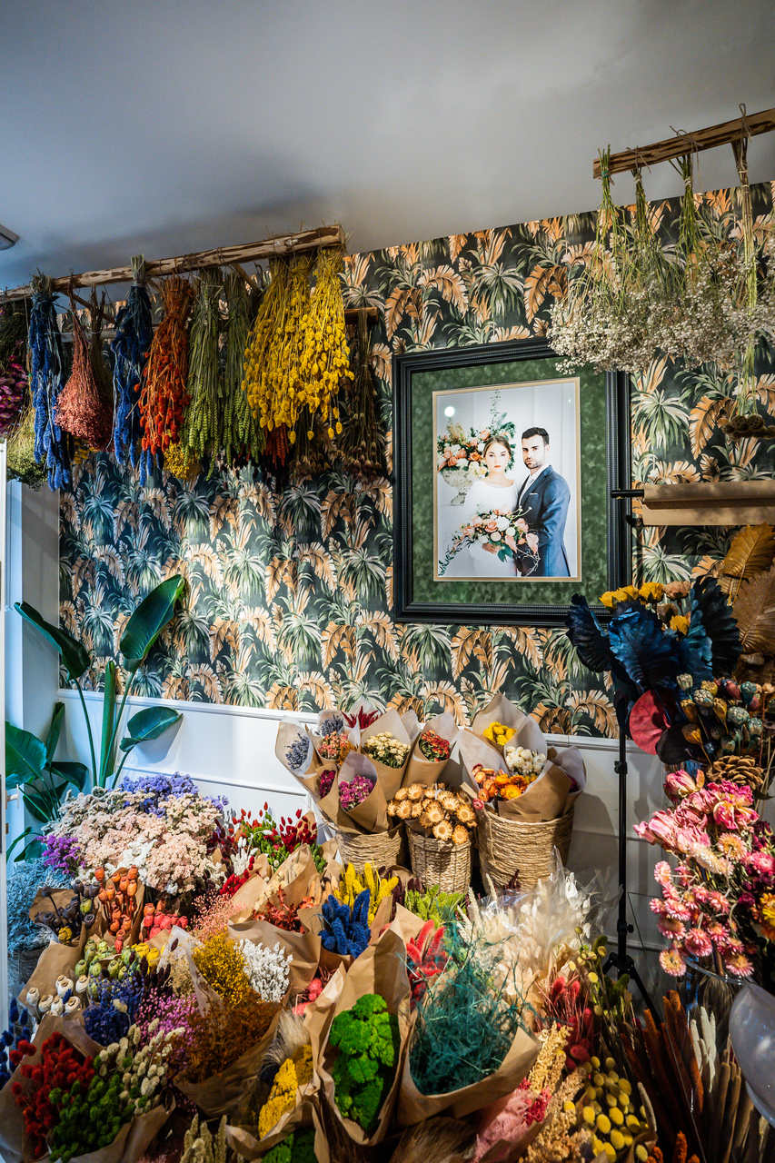Nesta loja de flores secas e preservadas há arranjos para complementar a decoração de Natal, e bonitas cúpulas e cestos florais para oferecer.