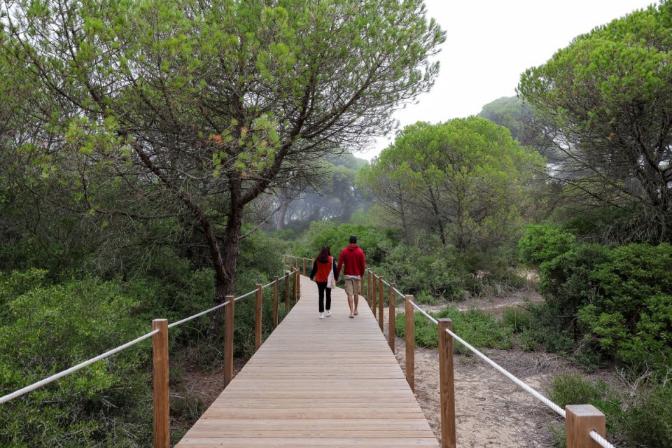 Pelo caminho, avistam-se pinheiros-mansos centenários, medronheiros, espinheiros-pretos, zimbros-galegos, arménias e camarilhas, açafrão-bravo e exemplos de aromáticas como o tomilho-da-praia, rosmaninho e perpétua-das-areias. Além da flora, a fauna também ganha destaque pelas placas informativas espalhadas pelo espaço, já que aqui se encontram espécies com estatuto de ameaça, como o morcego-arborícola-pequeno. O ouriço-cacheiro, a toupeira, o falcão-peregrino e a rola-comum são outros animais que aqui encontraram abrigo.
