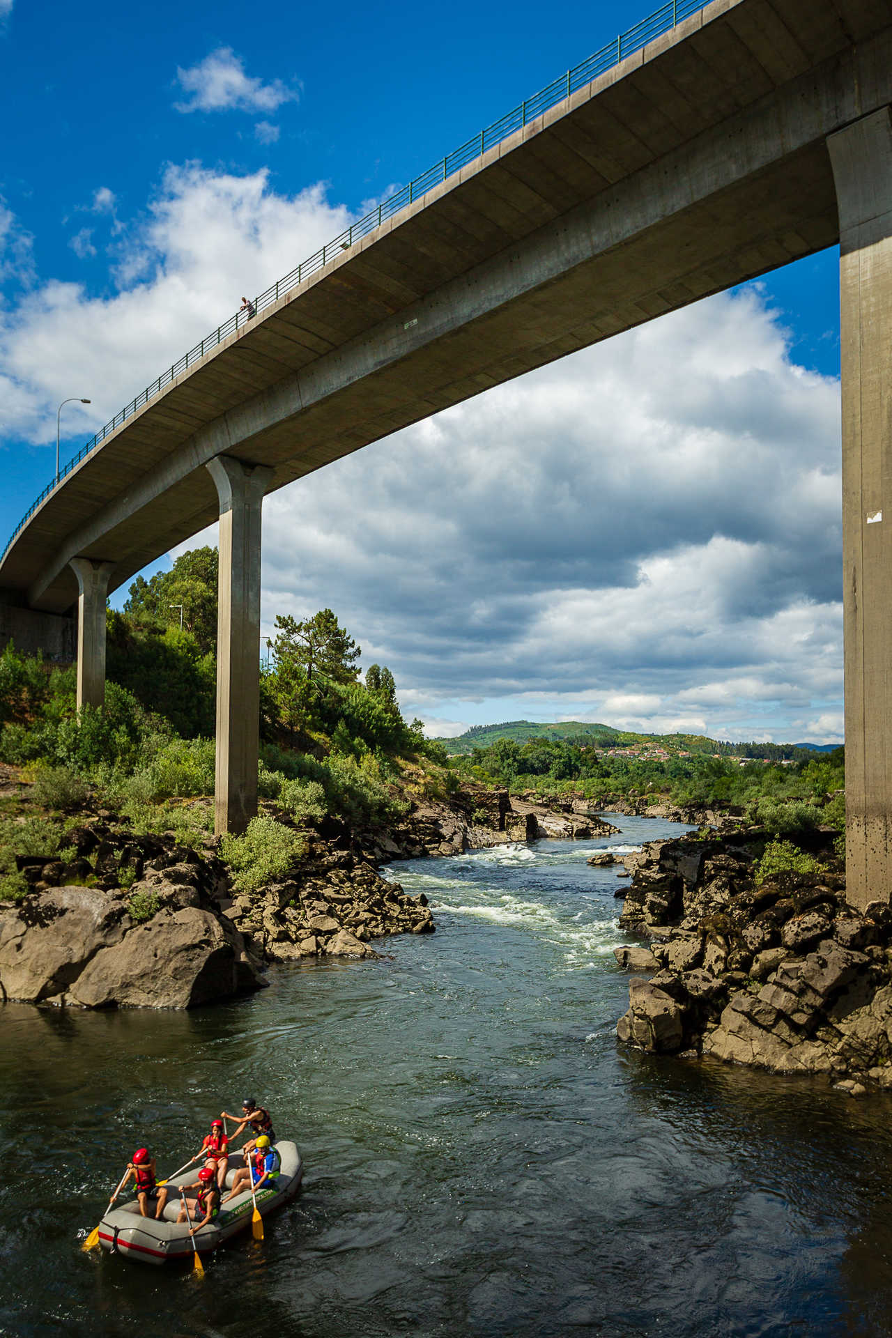 É um trabalho de equipa. Para descer as águas bravas do rio Minho, é necessário coordenação entre todos os participantes a bordo do bote pneumático, para ultrapassar os obstáculos sem dar um mergulho involuntário no rio. São as pesqueiras – esses muros seculares que afunilam as águas – as responsáveis pelos fortes desníveis que dão origem aos rápidos ao longo do rio, e que fazem do Minho lugar de eleição para a prática de rafting, e Melgaço uma das capitais ibéricas desse desporto radical. Principalmente porque a abundância de água o permite fazer durante todo o ano, ao contrário do que acontece no resto do país.