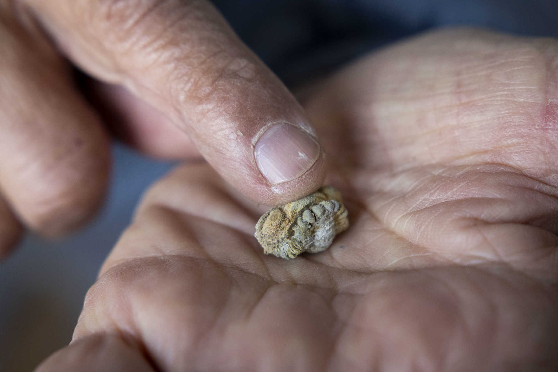 - Uma pequena trilobite enrolada. (Fotografia de Artur Machado/GI)