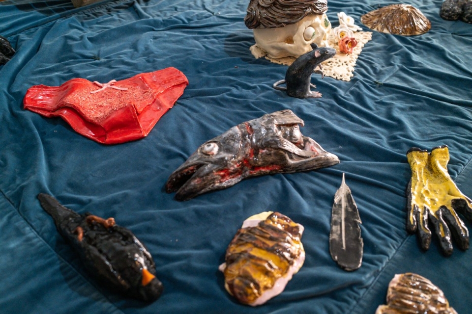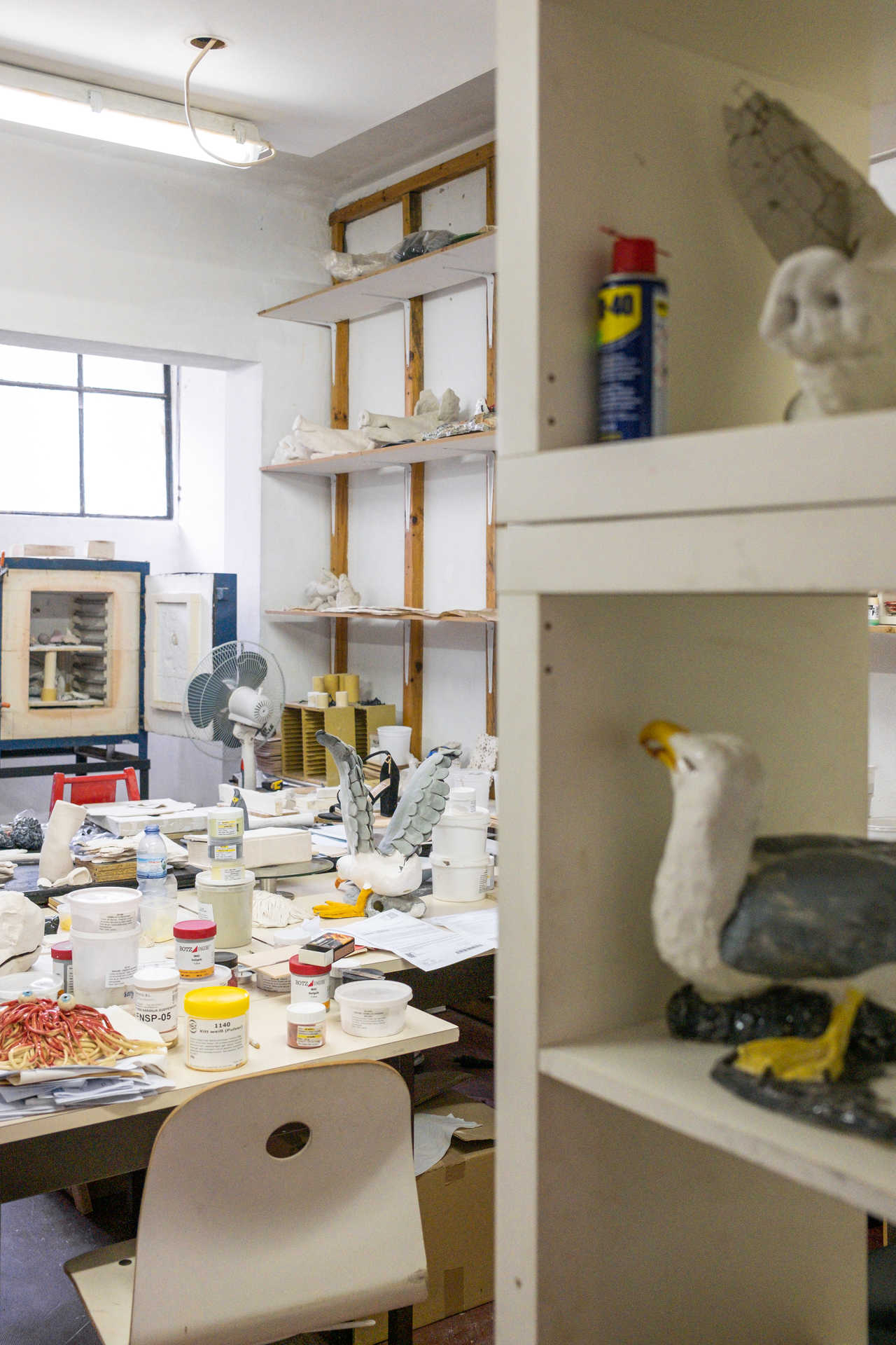 Aquelas peças de cerâmica à escala real intrigam, provocam, tanto podem gerar surpresa como repulsa. Não se fica indiferente à representação de pombas estropiadas por gaivotas, ratos, cuecas ou um preservativo usado. Há também polvos e cabeças de peixe, a lembrar as peixeiras que outrora vendiam nos passeios do Bonfim, ou cabeças de porco inteiras, como havia nos talhos, exemplifica Fabrízio. E não faltam achados curiosos para garantir a continuidade do projeto, seja uma peruca abandonada ou um sapato de salto alto deixado à porta do ateliê, que está aberto a visitas, preferencialmente, por marcação. Os trabalhos podem ser adquiridos ali, por valores que começam em 25 euros e estão indexados ao salário mínimo nacional.