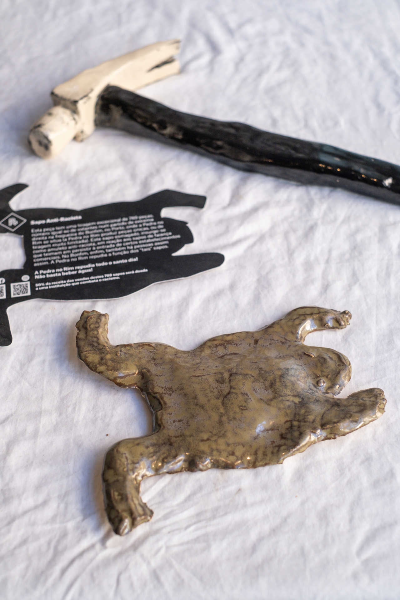 - O sapo antirracista é das raras peças que não são únicas ou de edição muito limitada. (Fotografias de Igor Martins/Global Imagens)