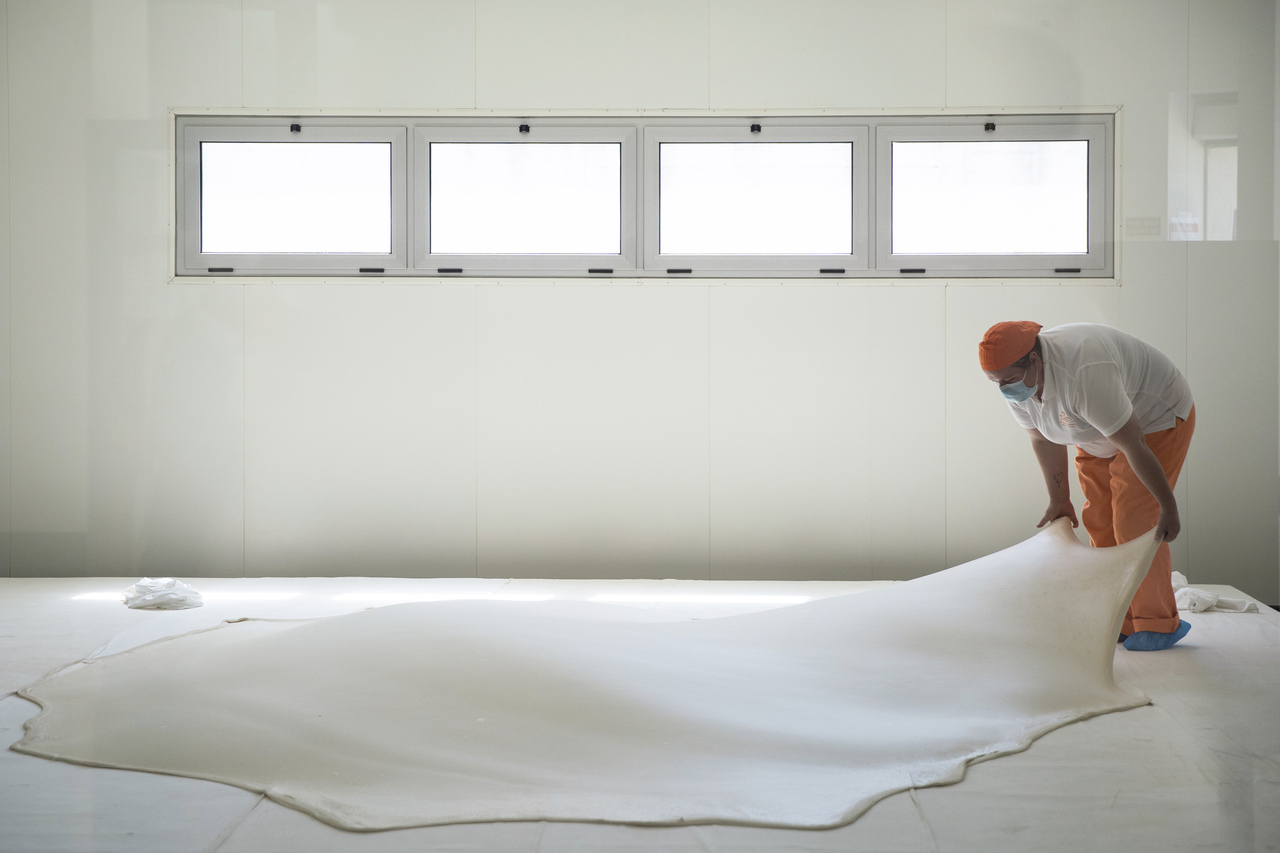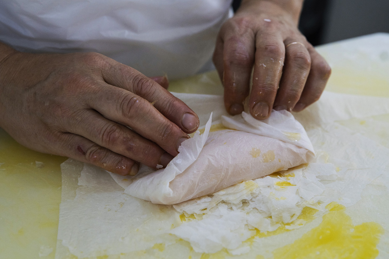 - A massa do pastel de Tentúgal é esticada até atingir uma espessura finíssima. (Fotografias: Maria João Gala/GI)