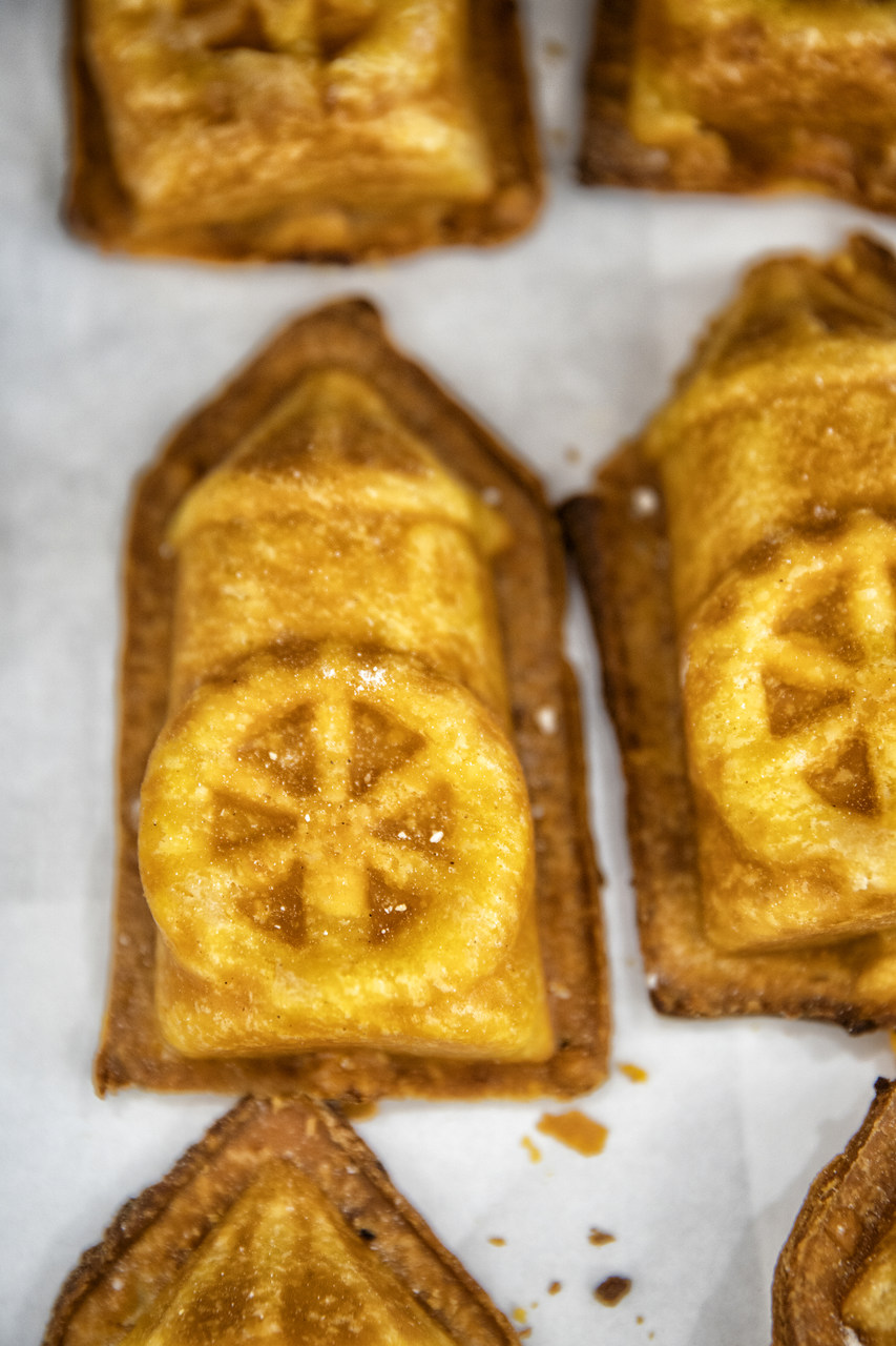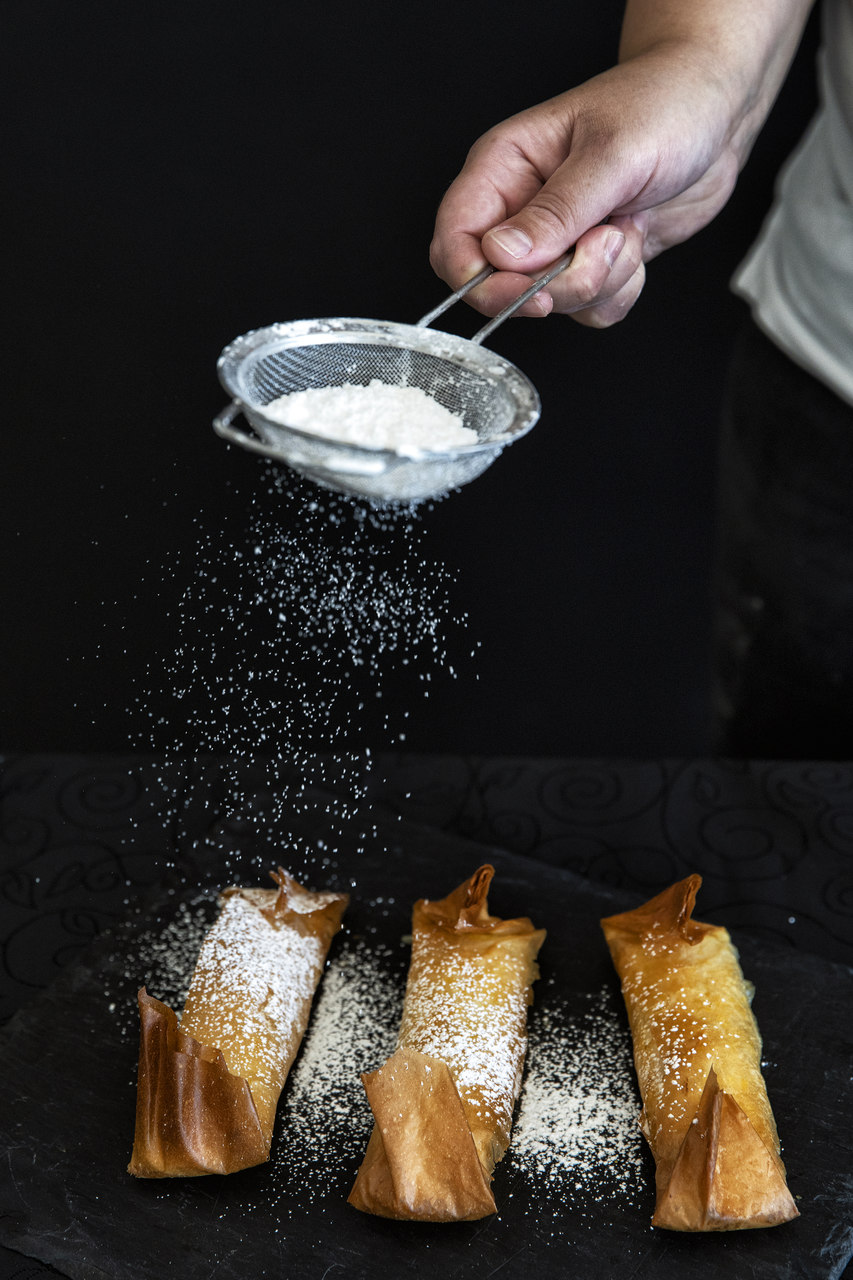 Durante todo o dia, os clientes podem ver a massa ser esticada à mão e secar até ficar finíssima e translúcida. “As freiras diziam que tinha de se conseguir ler a Bíblia através da folha”, comenta José. Segue-se o armar do pastel: à delicada massa junta-se um recheio de açúcar e ovos, e sela-se com uma mistura de gorduras aplicada com uma pena de peru. José, que se iniciou nessa arte aos 12 anos, vê no Moinho Novo uma homenagem ao pai, Júlio, cedo falecido, e à avó paterna, Francelina, que “sempre teve moinhos e vivia no Moinho Novo [uma povoação]”.