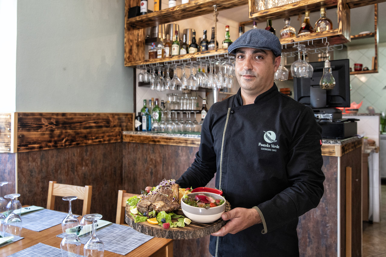 Da sede de concelho à povoação de Casal Novo do Rio é um pulo. Foi lá que o chef Guerreiro Dias abriu, há um ano, o restaurante PIMENTA VERDE. No lugar de uma antiga tasquinha, criou um pequeno espaço de cozinha de autor, traduzida em pratos como T-Bone ou bacalhau confitado com puré de batata-doce e couve pak choi. Procura não fugir muito aos paladares tradicionais, antes apresentá-los de maneira distinta. Sabor e estética aliados, das entradas às sobremesas.