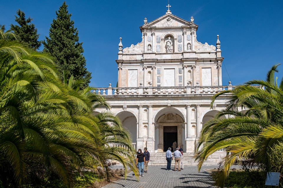 Iniciada a sua edificação em 1587, o Mosteiro de Santa Maria Scala Coeli, foi o primeiro mosteiro da Ordem dos Cartuxos a ser construído em Portugal. Objeto de diferentes utilizações ao longo da sua história, como Hospício de Donzelas Pobres de Évora, Escola Agrícola Regional e centro de lavoura da Casa Agrícola Eugénio de Almeida, o mosteiro volta a recuperar a sua função religiosa, em 1960, graças à intervenção de Vasco Maria Eugénio de Almeida.