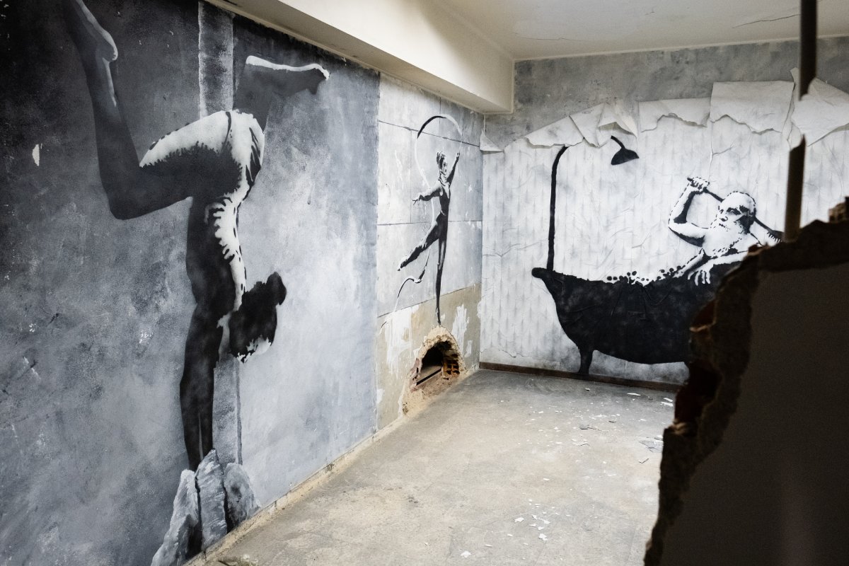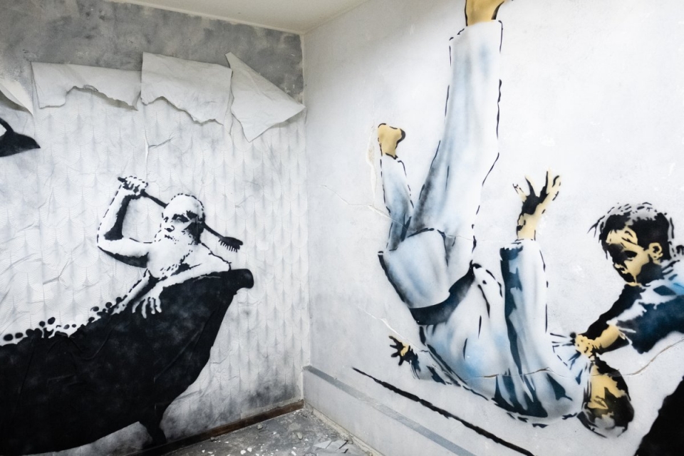 Os novos murais juntam-se a “Girl with balloon”, “Rage, the Flower Thrower” e “Israeli and Palestinian pillow fight”, que já são um cartão-de-visita do trabalho do artista de street art cuja a identidade continua a ser segredo. Para além dos murais, que recriam a técnica de stencil de Banksy, os visitantes podem explorar o seu trabalho através de instalações de vídeo, graffitis e projeções.