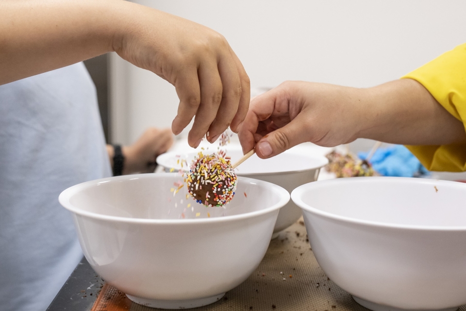 Especialmente criada para crianças a partir dos 4 anos, a experiência “Chocolatinhos” ensina os mais pequenos a fazer cake pops, metendo as mãos na massa para moldar os bolinhos, que podem depois cobrir com chocolate Vinte Vinte e decorar com pepitas coloridas. A receita é simples, para que consigam replicar em casa.