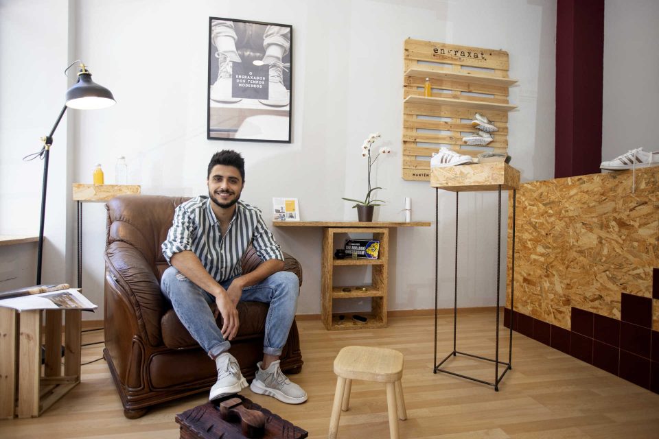 O ofício também já não lhe era estranho. Seguiu as pisadas do avô, que recorda de ver na rua a engraxar sapatos. «Peguei nas raízes que herdei dele e tentei valorizar uma profissão nobre», conta. Assim nasceu um serviço que reanima a atividade de engraxador adaptando-a às necessidades da atualidade. «Quero mostrar que podemos ir mantendo as sapatilhas como novas, limpando, cuidando e protegendo», defende.