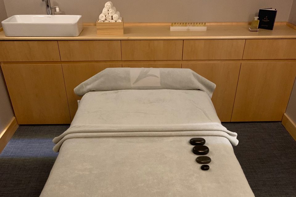 A terapeuta faz as massagens à vez (com a pessoa deitada de barriga para baixo e para cima) com um óleo de alecrim, pimenta preta, gengibre e lavanda da Aromatherapy Associates. O mesmo é utilizado para fazer as massagens, por ter propriedades relaxantes. Antes de tudo, porém, faz-se um exercício de respiração útil para o dia-a-dia: o chamado box breathing, que consiste em inspirar, suster, expirar e suster em quatro tempos.